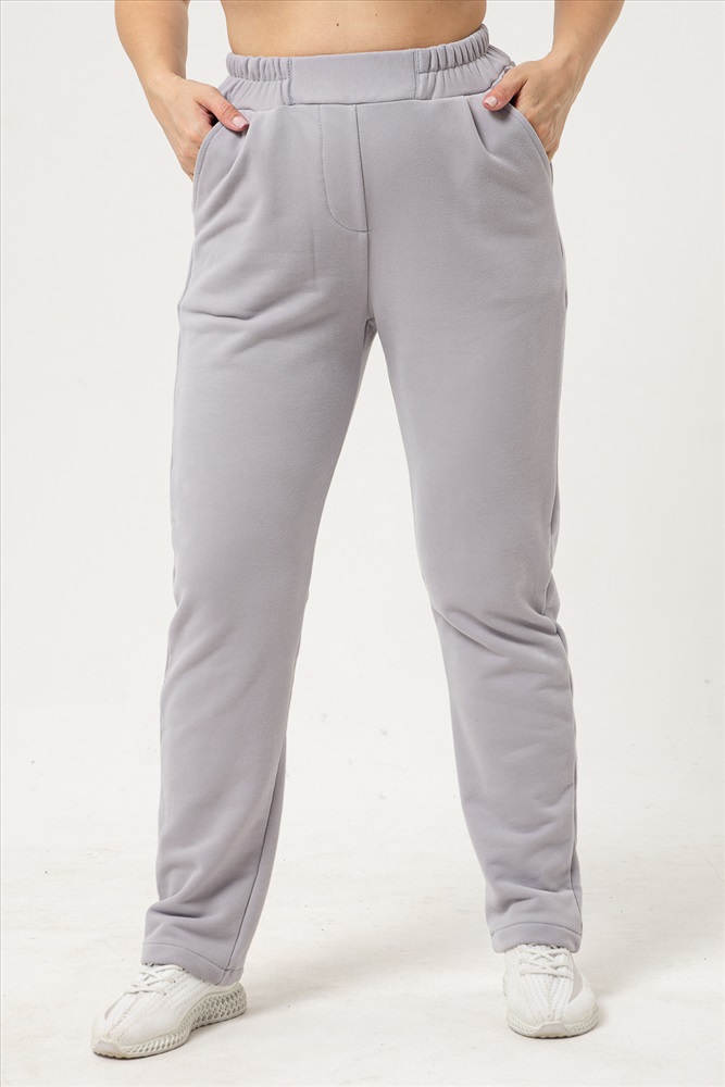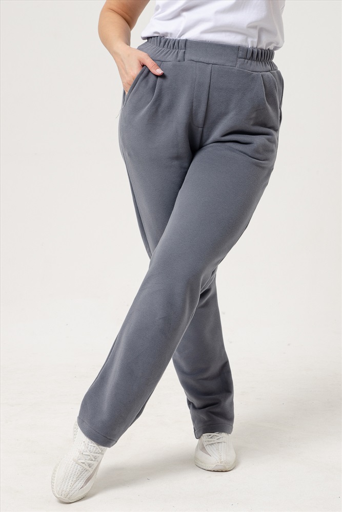 Застежка: без застежки Брюки женские выполнены из ткани футер 3-х нитка петля качество пенье с эффектом soft brush (мягкая кисть). Это новое направление в обработке ткани, что придает изделию мягкость байки и легкость бархата. Брюки на поясе, с карманами, спереди защипы. Они очень удобного покроя, комфортные, легкие и теплые, подойдут для отдыха, прогулок и спорта. Для удобства подбора размеры смежные: 44-46; 48-50; 52-54; 56-58; 60-62. К брюкам можно подобрать в комплект толстовку 6757 - ткань и цвет идентичны