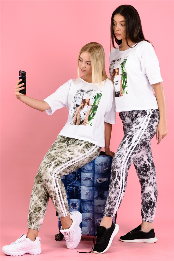 Застежка: без застежки Брюки свободные, длинные, с карманами, на эластичном поясе, с резинкой по низу. Вдоль боковых швов расположены лампасы из отделочного полотна.