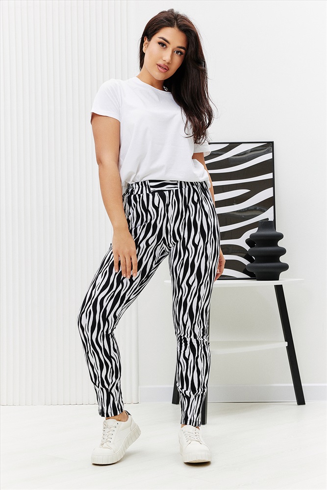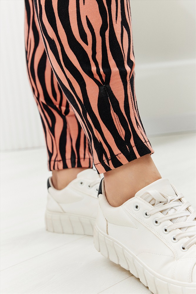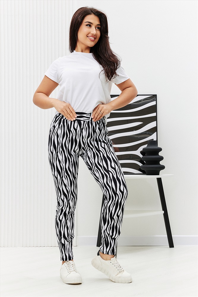 Застежка: без застежки Брюки женские с завышенной талией яркой оригинальной расцветки выполнены из кулирки 100% хлопок. Брюки на широком поясе с резинкой, спереди защипы, по бокам карманы, внизу заужены благодаря защипам. Изделие имеет очень удобную посадку, брюки комфортные в носке, идеально подойдут как для дома, так и для отдыха.