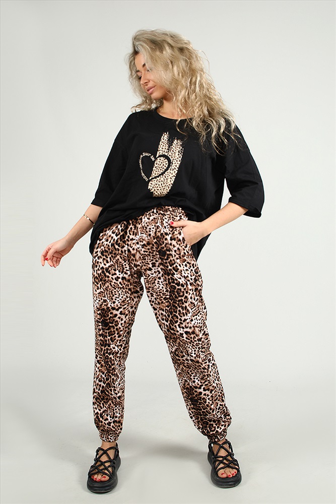 Состав: хлопок 100% Модель: Брюки 88060 Тип товара: брюки Материал: кулирка | кулирка Бренд: Натали Суслова Карман: боковые Особенности: на резинке Отделка: с карманами Посадка: высокая посадка Рисунок: анималистичный Сезонность: лето | осень | весна Скидка: любая | от 10% и больше | от 30% и больше Стиль: повседневный Застежка: без застежки Брюки женские с карманами. Данная модель выполнена из трикотажного полотна кулира (хлопок 100%). Пояс на резинке 4см. с отстрочками, по низу изделия пришита резинка 2см. Отличная модель для повседневной носки, идеально подходит с футболками 88049, 88050, 88051. Таблица размеров и веса