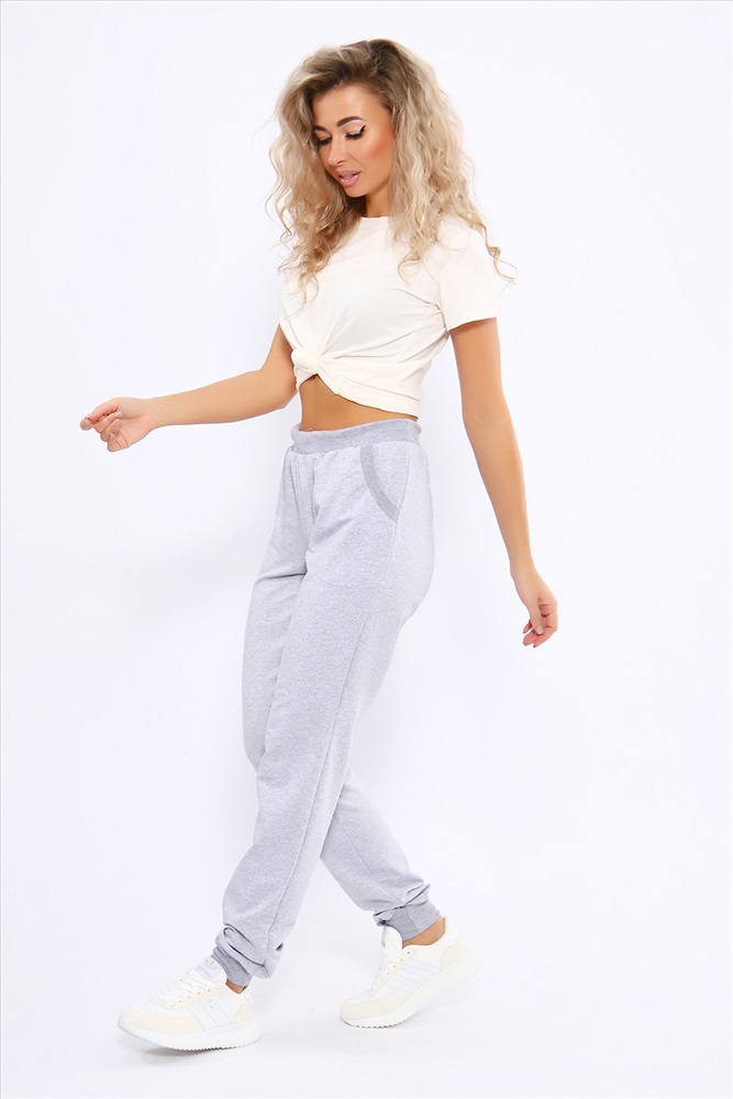 Застежка: без застежки Брюки женские с манжетами. Данная модель выполнена из трикотажного полотна футер 2-х нитка. Манжеты, пояс и вход в карман выполнены из эластичного трикотажного полотна кашкорсе. Отличная модель для прогулок и повседневной носки.