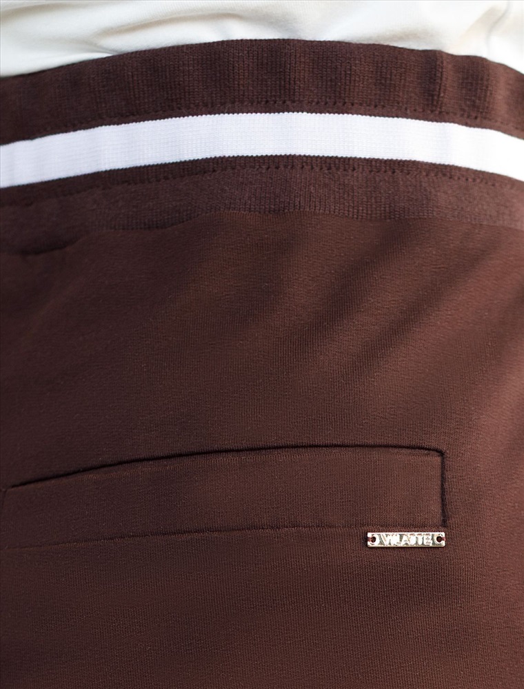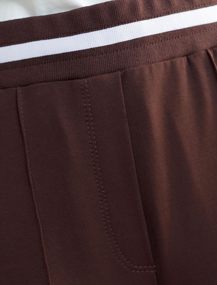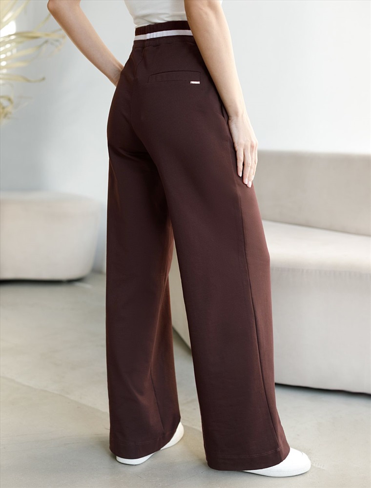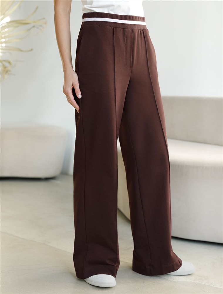 Плотность: 240 Г/м2 Брюки коричневого цвета с удобным эластичным поясом на резинке и карманами по бокам выполнены из премиального футера-двухнитки плотностью 240 Г/м2. Наличие эластана в составе гарантирует комфорт и долговечность изделия, материал хорошо пропускает воздух, позволяя телу дышать. Свободный прямой крой обеспечивает свободу движений и максимальное удобство в любых ситуациях, поэтому они подойдут и на большие размеры, а так же на высокий или низкий рост. Фигура подчеркивается, а силуэт визуально вытягивается за счет кроя палаццо и застроченных декоративных стрелок. В повседневных трикотажных брюках вы будете чувствовать себя комфортно и уверенно, наслаждаясь каждым моментом дня. Спортивные брюки подходят для демисезонного использования, в летний период, для занятий спортом в помещении и на улице, а также как часть стиля casual. Рекомендуем сочетать с артикулами: D49.083, D49.166, D49.171, D49.169