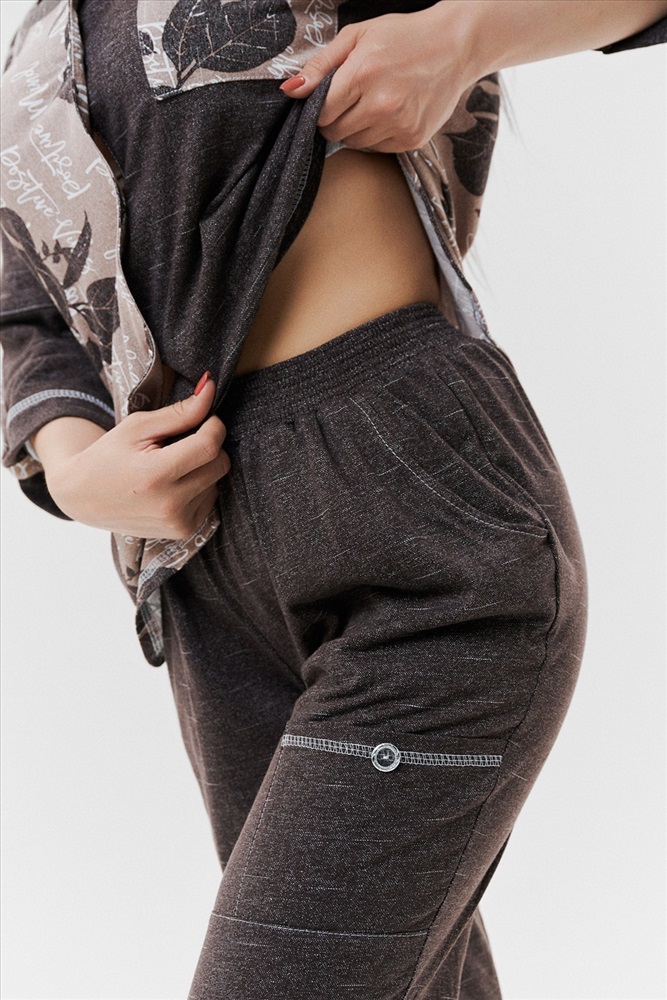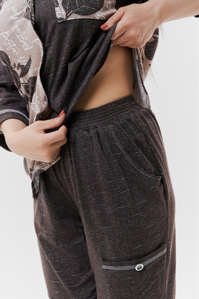 Состав: хлопок 100% Модель: Брюки 9139 Тип товара: брюки Материал: кулирка | кулирка Бренд: Натали Суслова Длина: укороченный Карман: боковые | накладные Назначение: для дома НДС: 22% Особенности: на резинке Отделка: с карманами Посадка: высокая посадка Рейтинг: Рейтинг 4 и выше Рисунок: однотонные Сезонность: лето Силуэт: полуприлегающий Стиль: домашний | повседневный Застежка: без застежки Брюки женские, бананы. На передней части брюк внутренние карманы. Также имеются два накладных кармана с пуговицей, Один в верхней части брюк, другой на средней части брюк. Низ передней половинки брюк на резинке. Пояс прострочен на многоигольной машине. Таблица размеров и веса