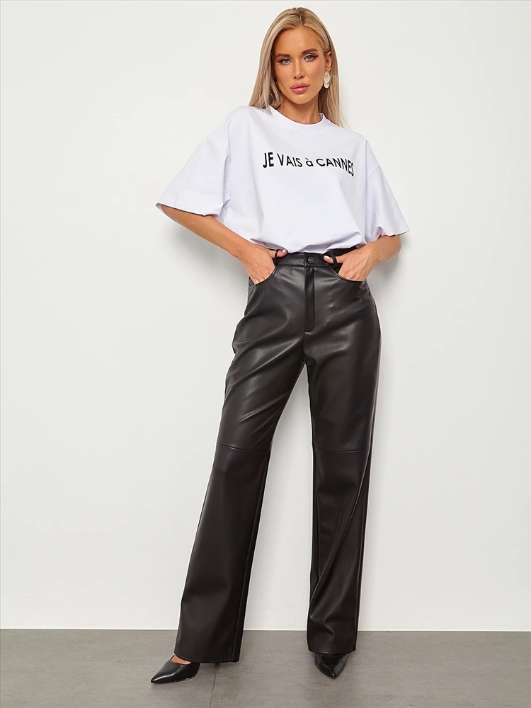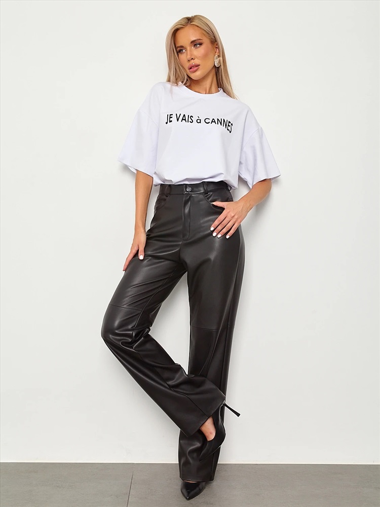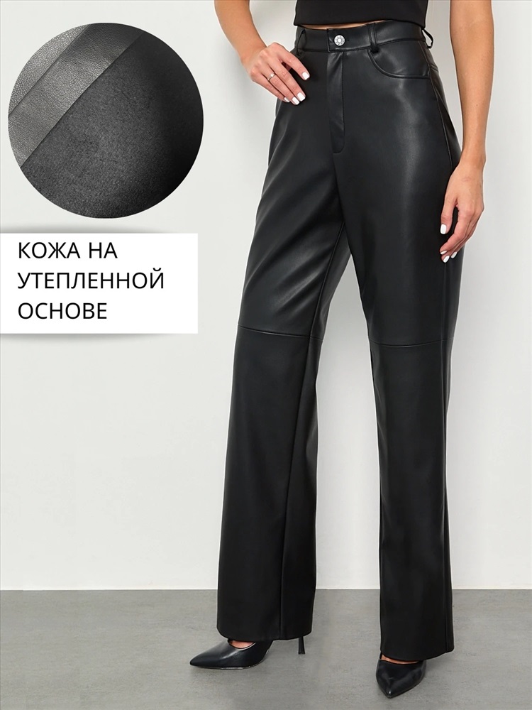 Брюки прямого кроя, высокая посадка.