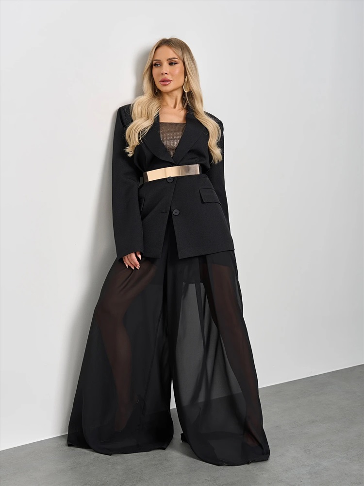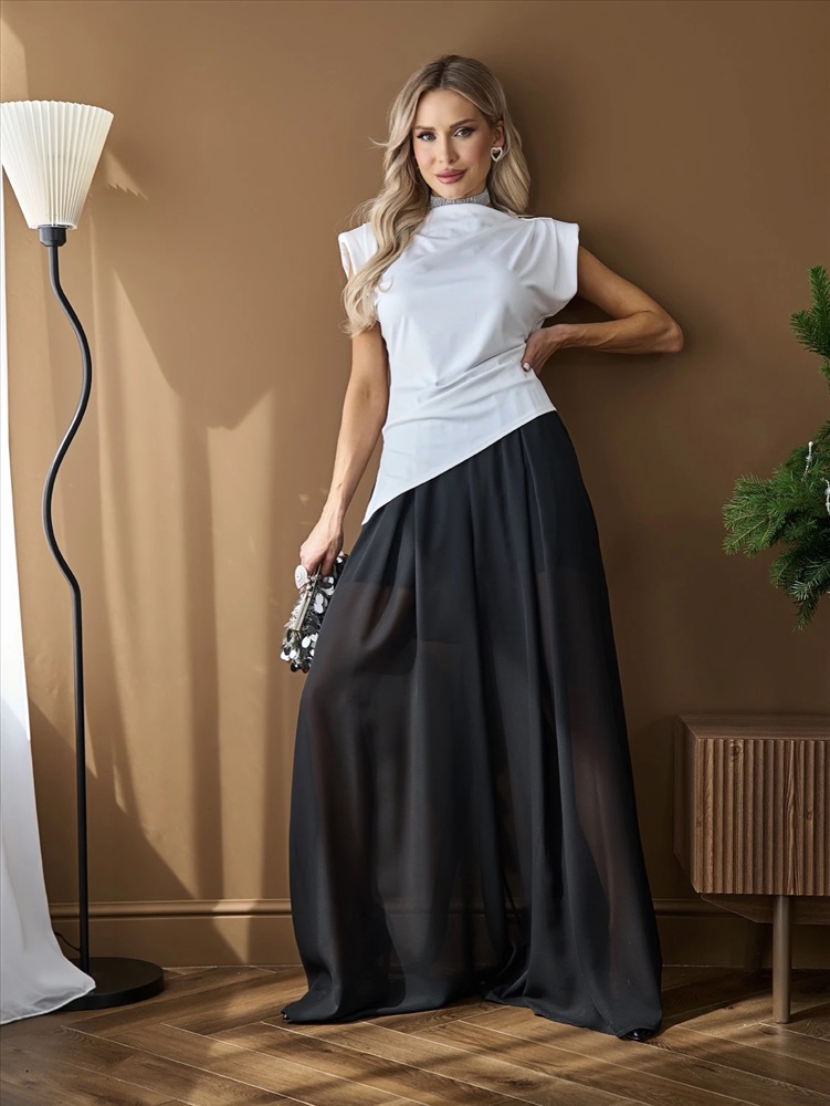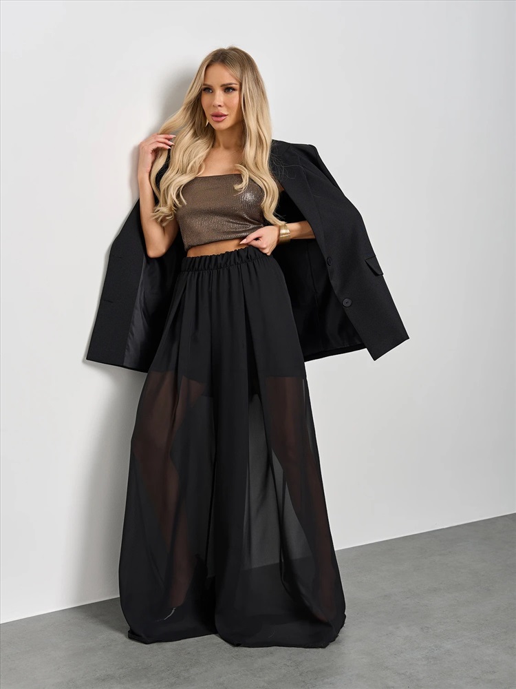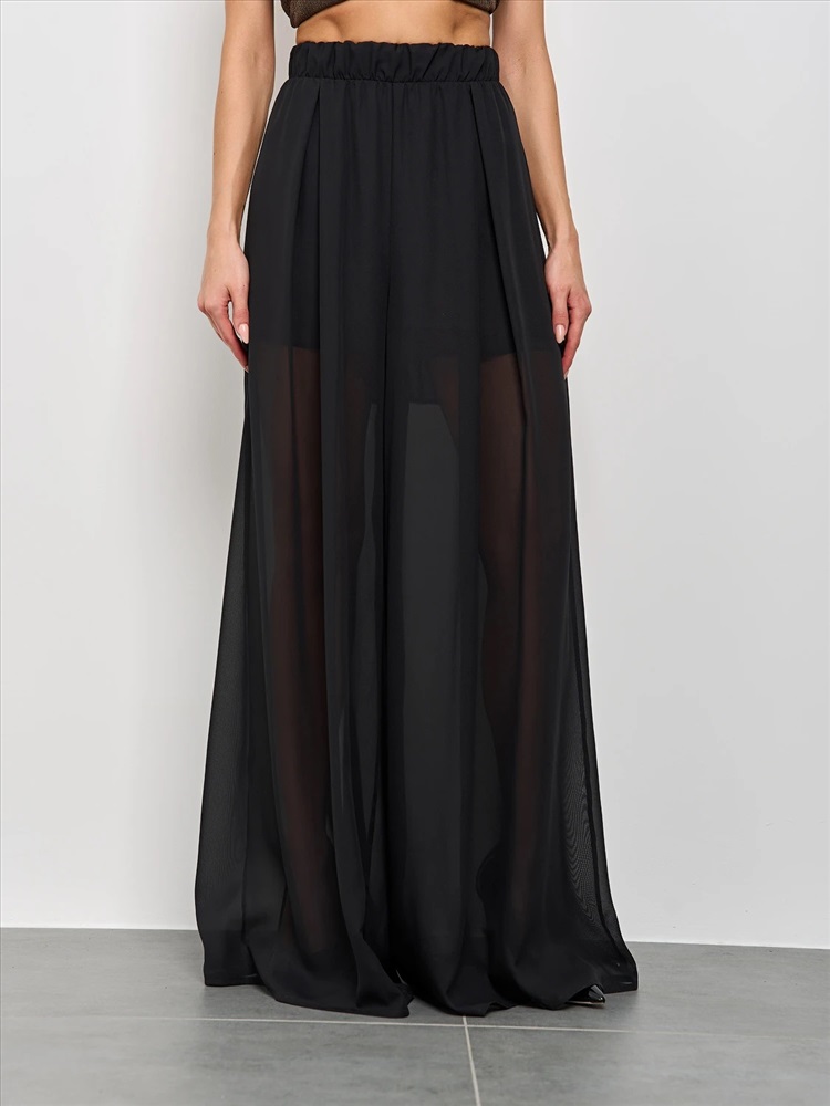 Брюки из шифона на резинке с защипами по переду.
