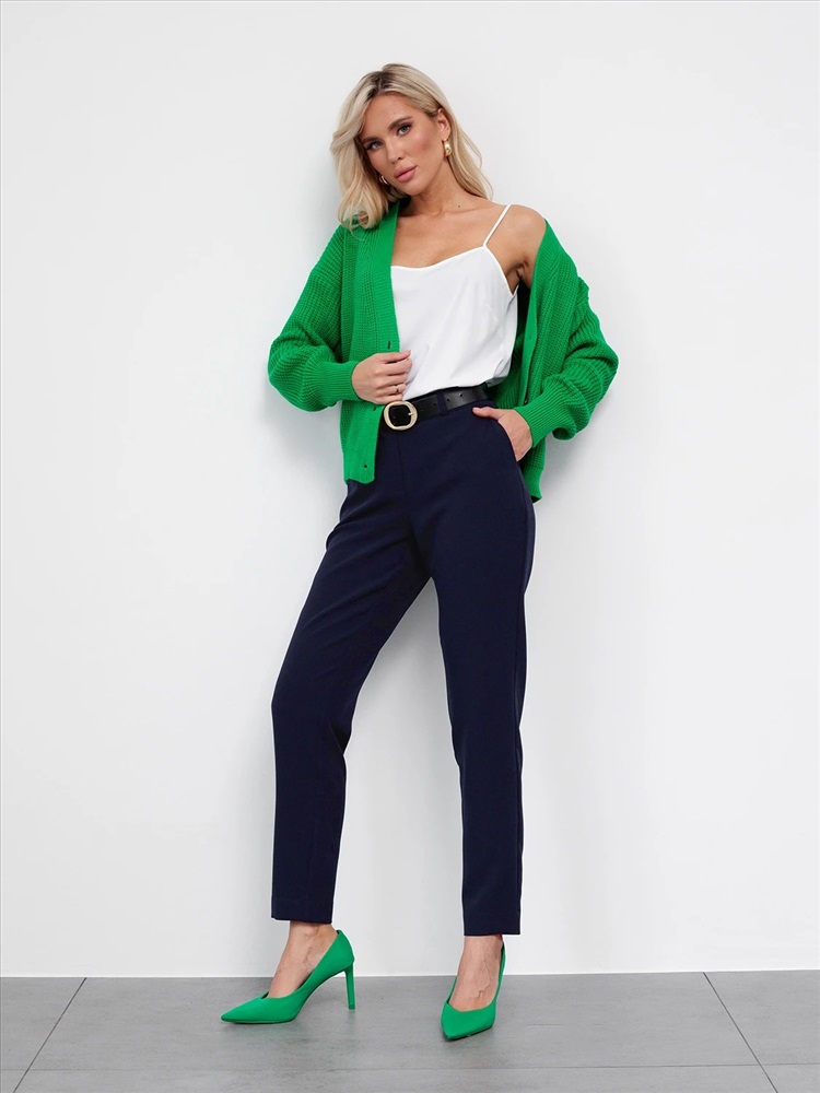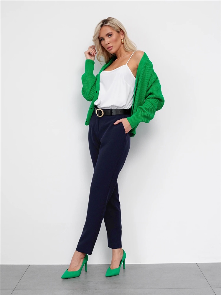 Брюки плотно прилегающие по бедрам и зауженные к низу.