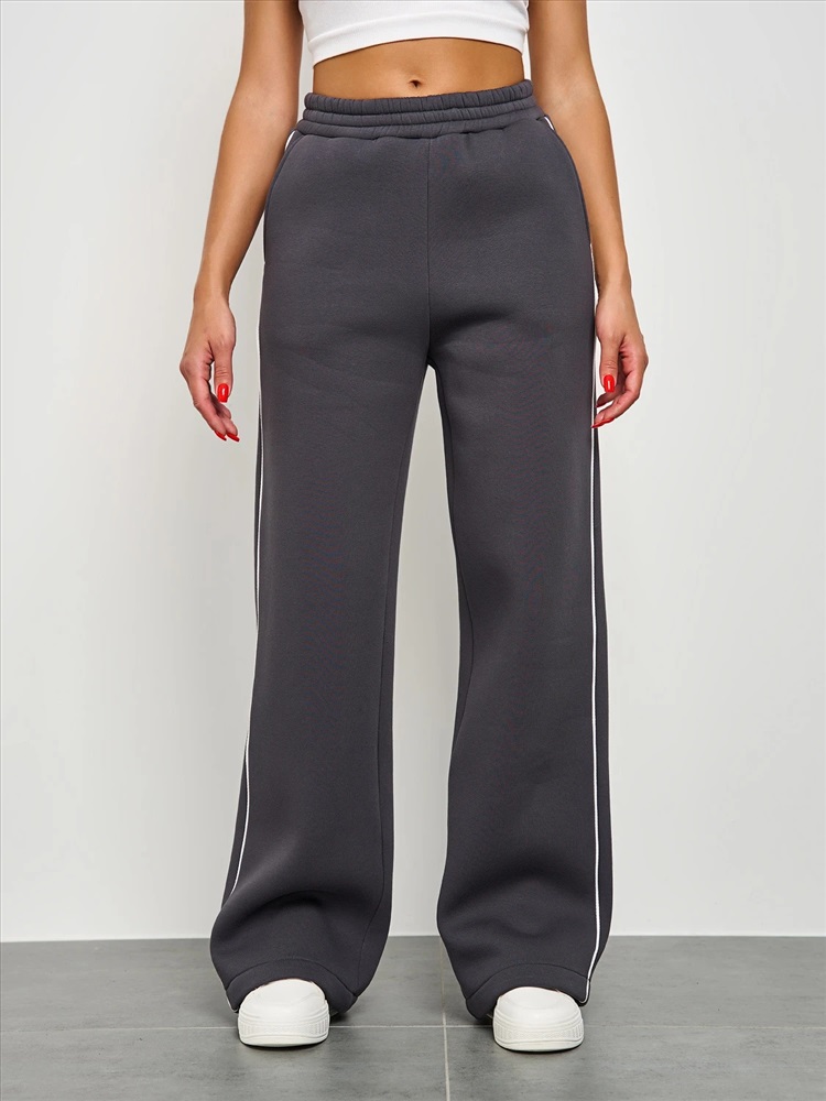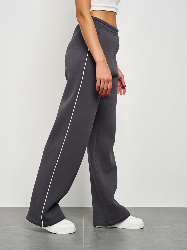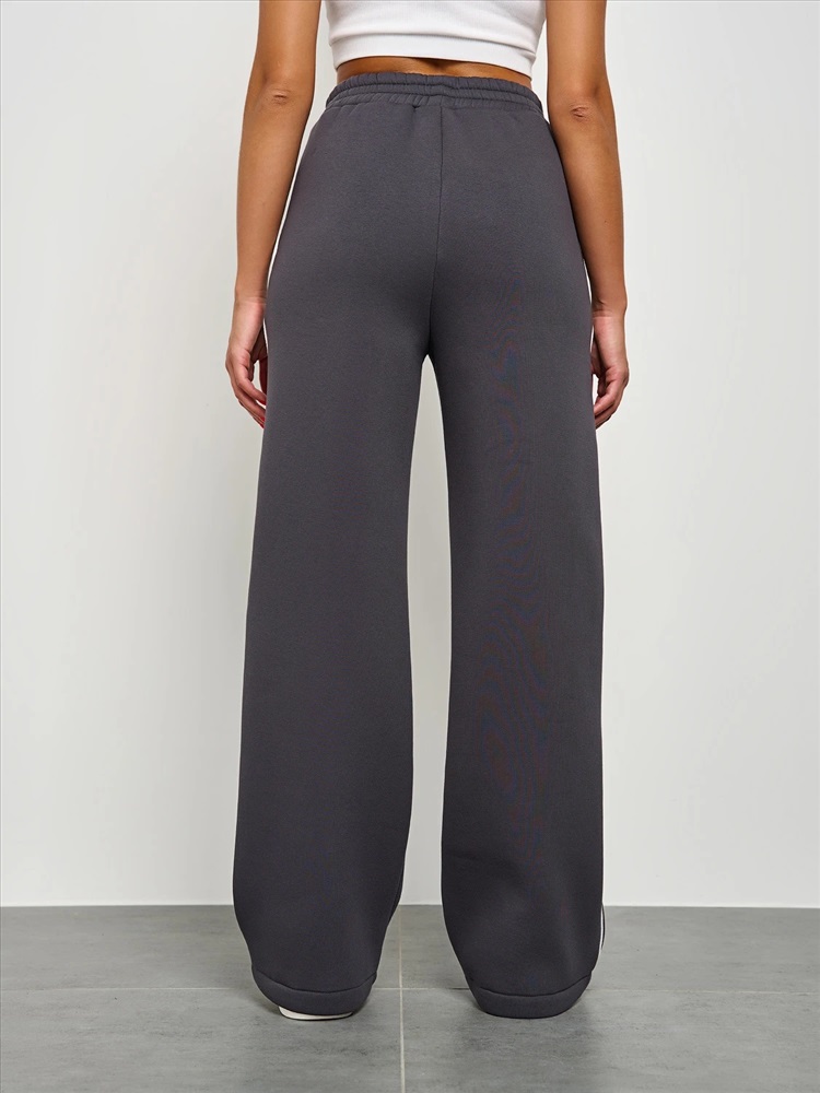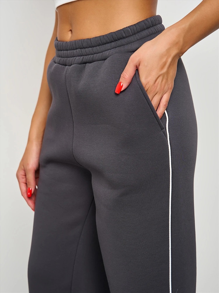 Широкие брюки из плотного премиум-футера 3-х нитка с начесом с тонкими лампасами , выполненными из декоративного контрастного канта.