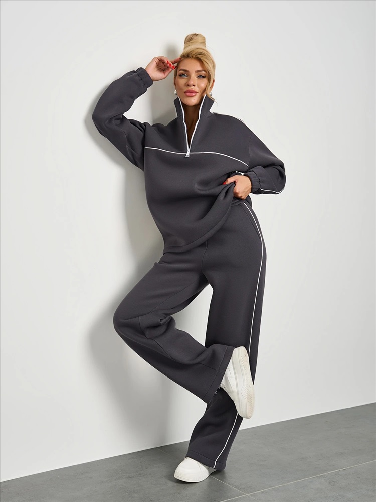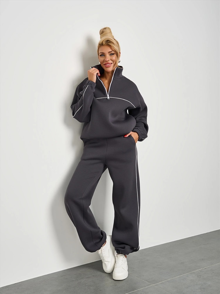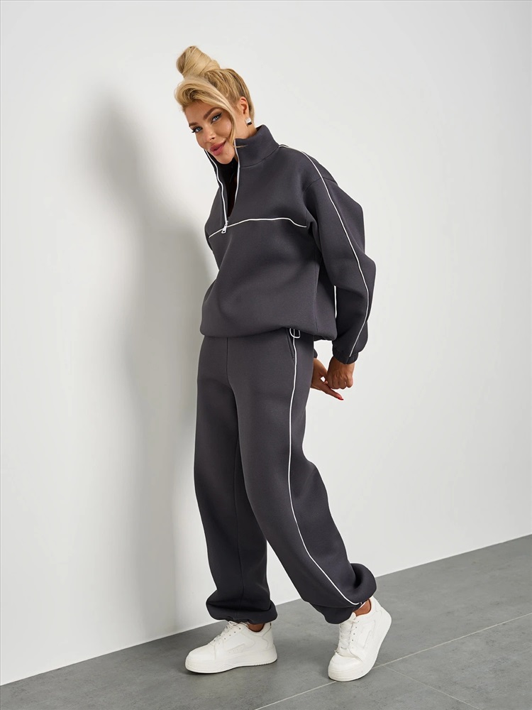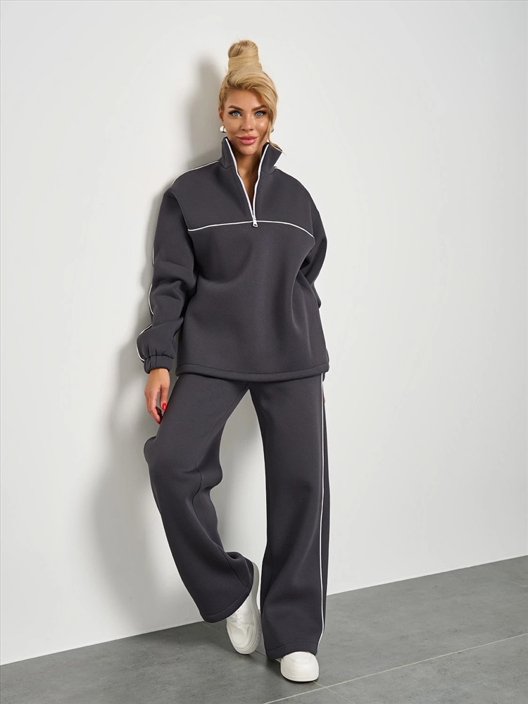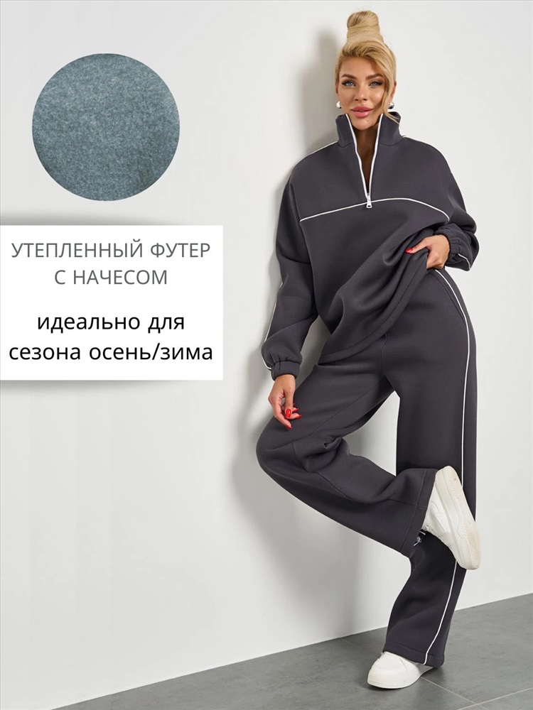 Широкие брюки из плотного премиум-футера 3-х нитка с начесом с тонкими лампасами , выполненными из декоративного контрастного канта.