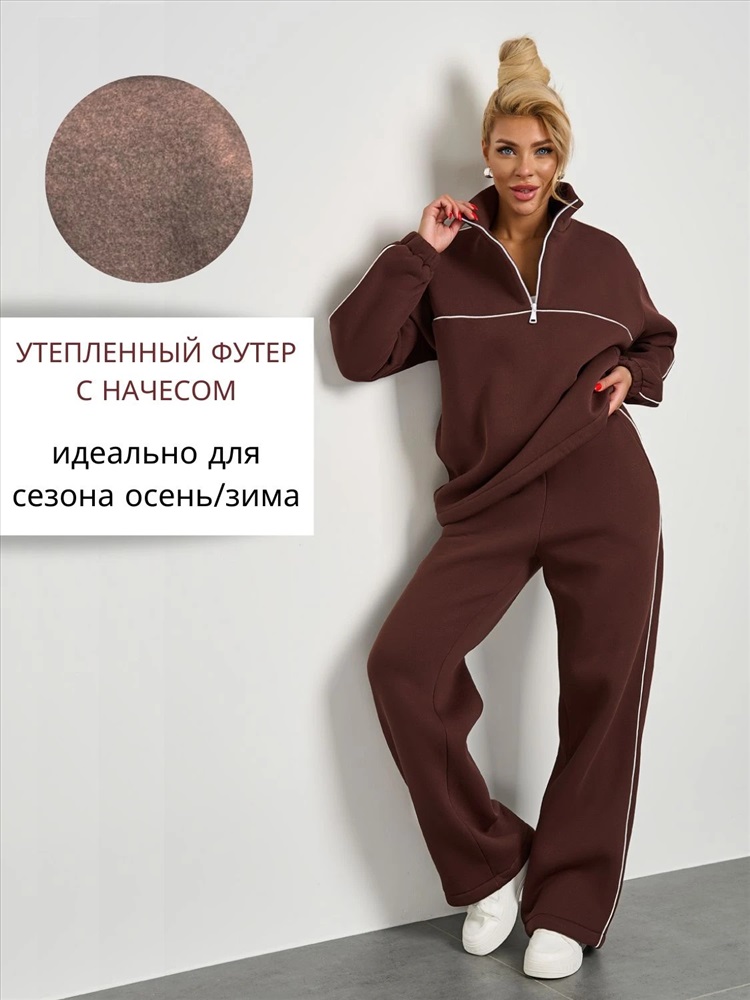 Широкие брюки из плотного премиум-футера 3-х нитка с начесом с тонкими лампасами , выполнеными из декоративного контрастного канта.