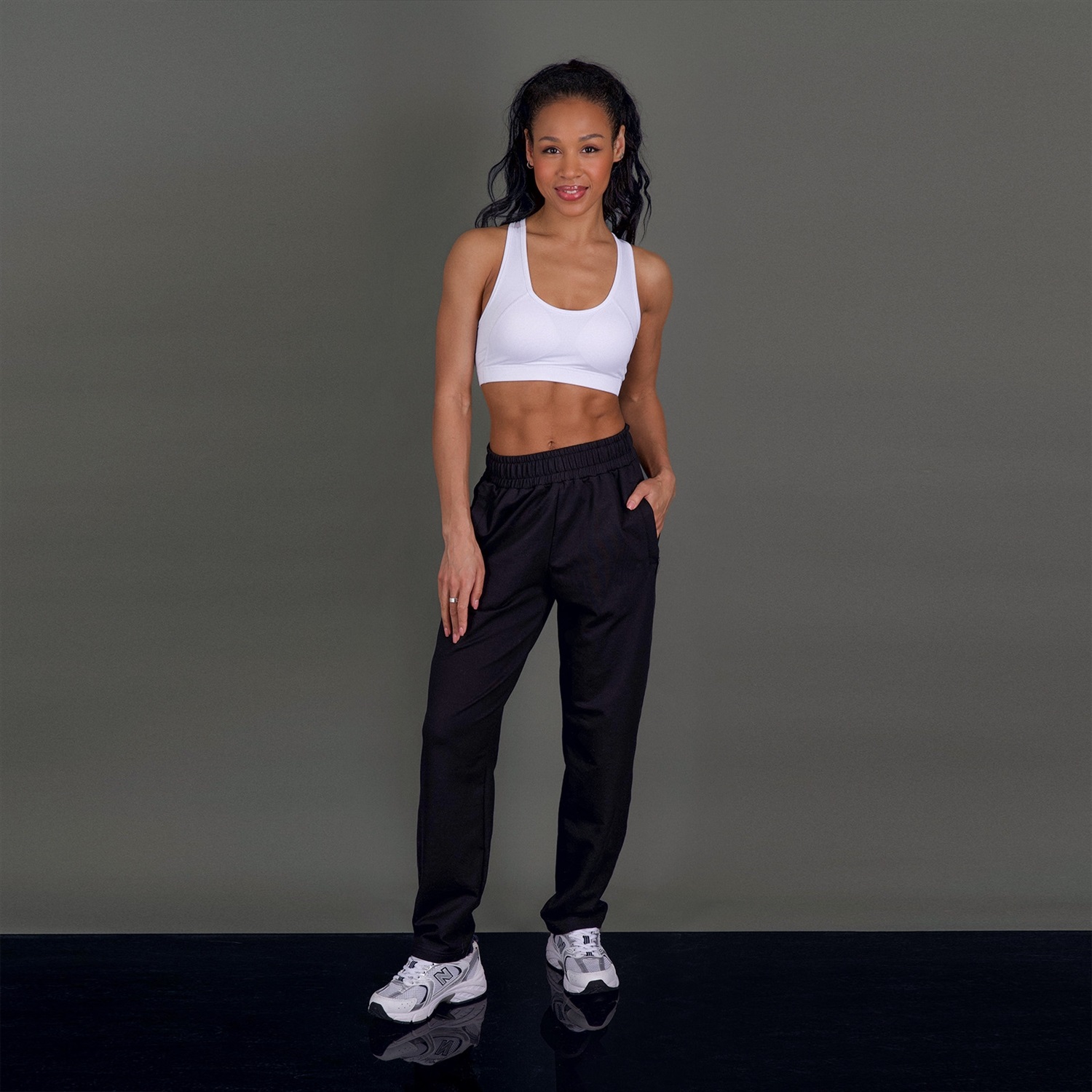 Женские брюки прямого кроя, притачной пояс и функциональные карманы на молнии.Материал: