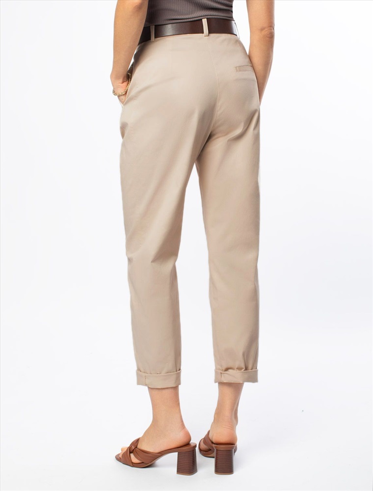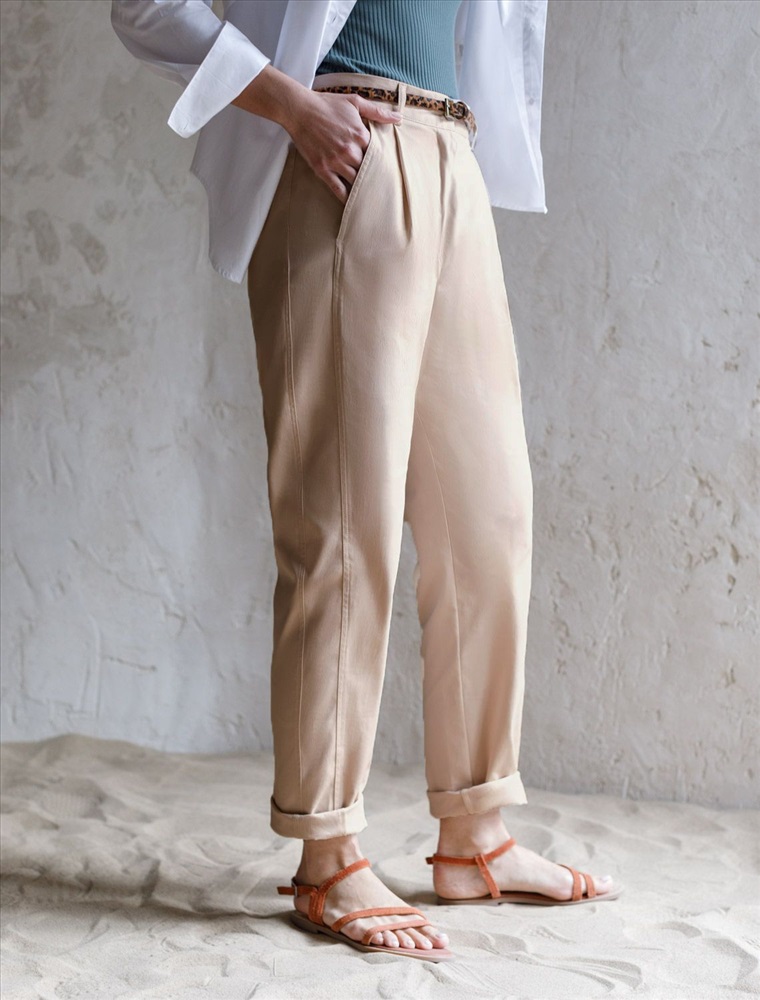 Параметры модели на первом фото: Рост 172, бюст 88, талия 64, бедра 88 Брюки-бананы в стиле кэжуал выполнены из хлопкового твила. Натуральный материал ткани обеспечивает высокий уровень комфорта, отличную гигроскопичность и воздухопроницаемость. Эластан в составе изделия минимизрует деформацию модели и продлевает срок носки. Брюки дополнены защипами и боковыми карманами. Зауженный силуэт подчеркивает достоинства и скрывает недостатки фигуры.