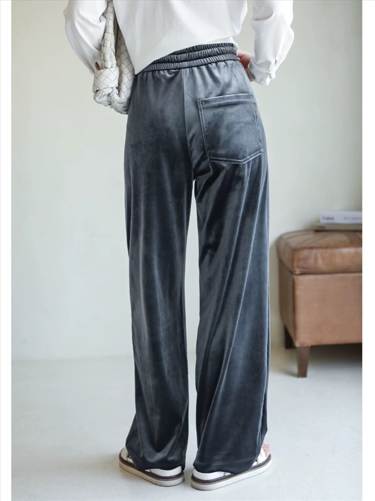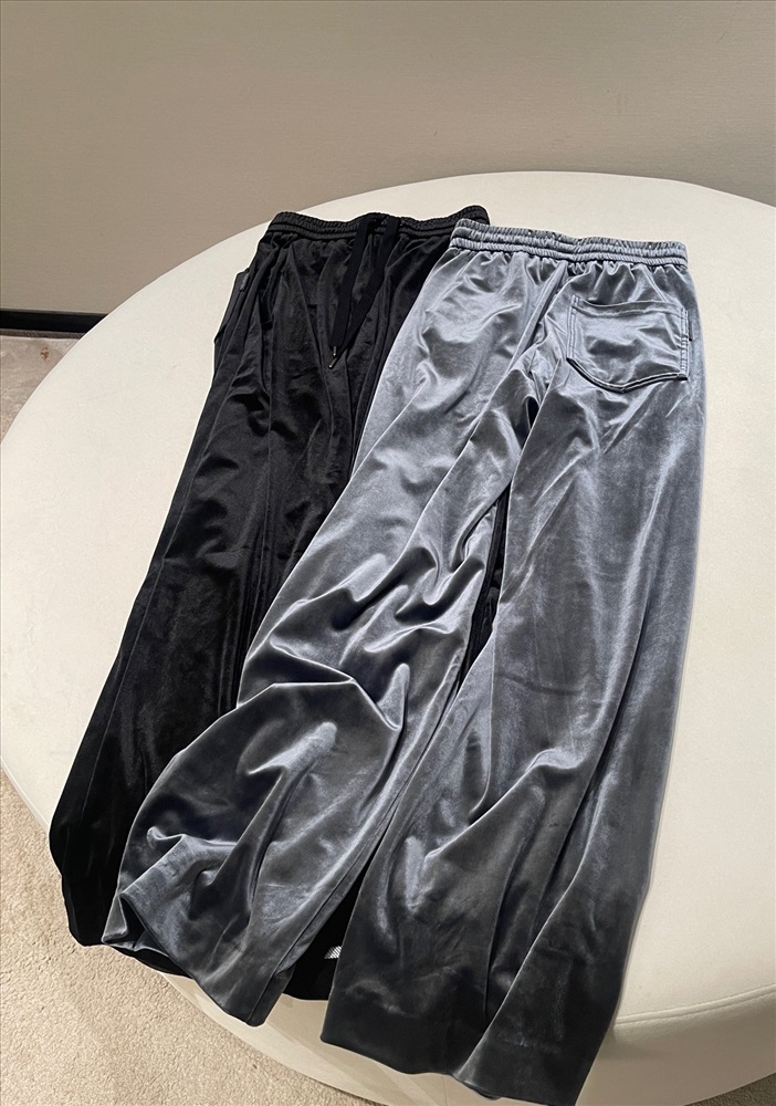 Осень – это бархат. Вы можете носить их постоянно. Еще одна пара бархатных брюк, которые можно сочетать со всем. Два цвета – классический черный и серо-синий – являются высококачественными и универсальными. Прямая версия создает ощущение ретро, ​​имеет очень прямую форму, привлекает внимание длинными ногами и ростом 1,8 метра, она элегантна и модна. Прямые и свободные брючины, плотная шелковистая ткань, отличная драпировка, а верхняя часть тела свисает естественным образом, что позволяет эффективно скрыть ложную ширину бедер и изменить форму ног. Это просто спаситель для грушевидной фигуры. Окрашенная на заказ ткань имеет полный блеск, нежную и мягкую на ощупь, она такая же мягкая и гладкая, как кроличий пух. Ч