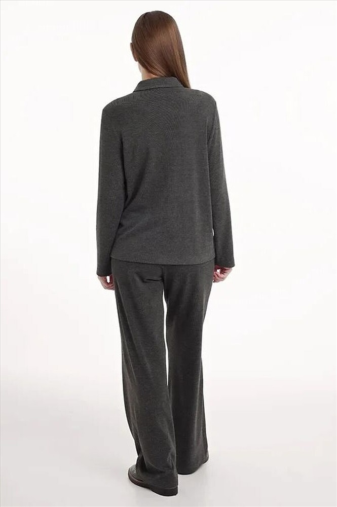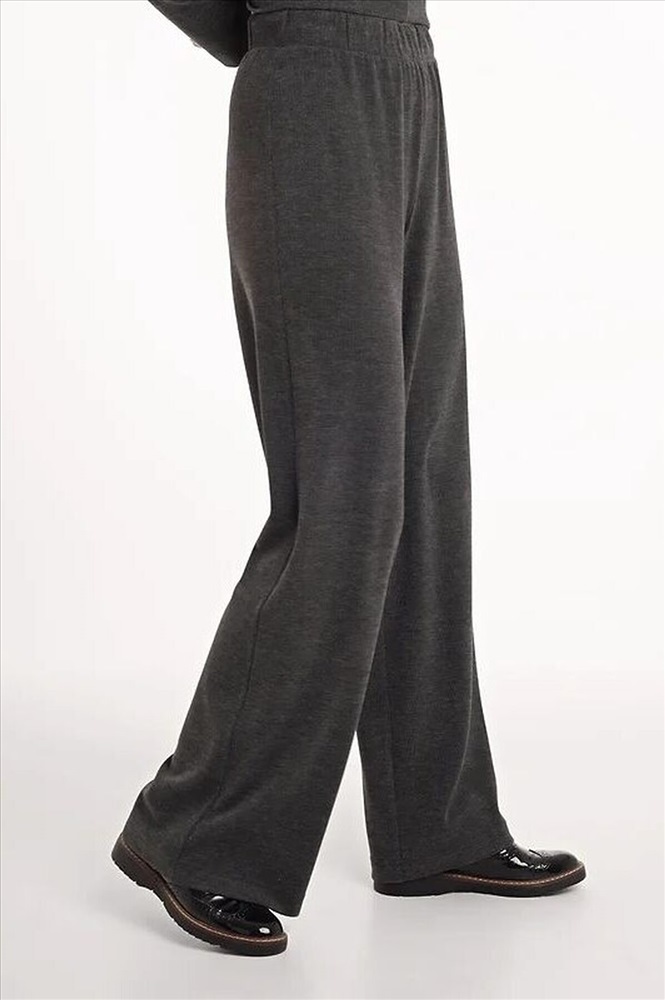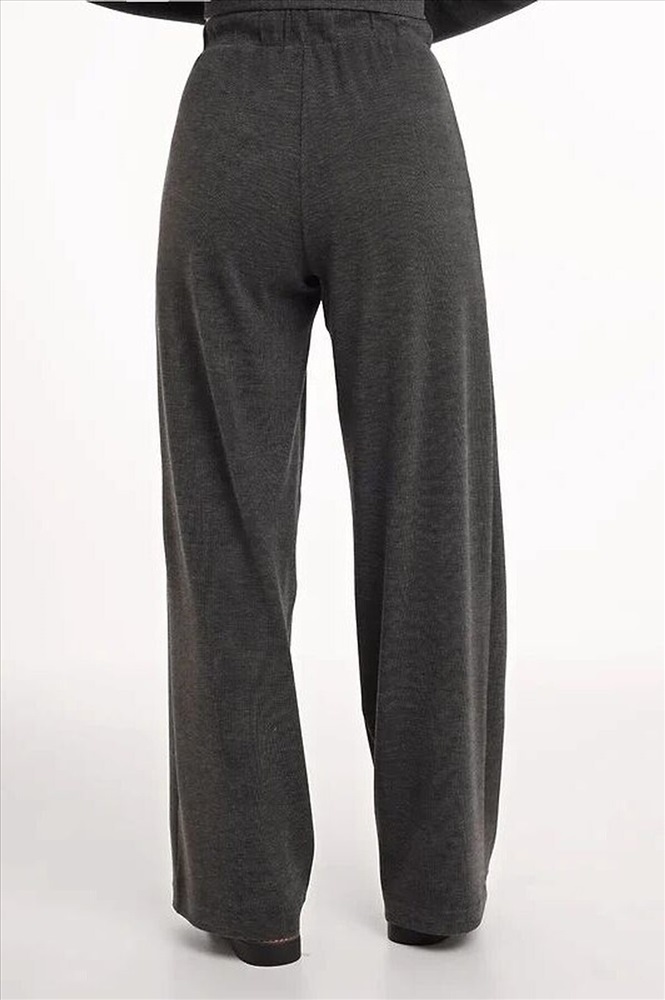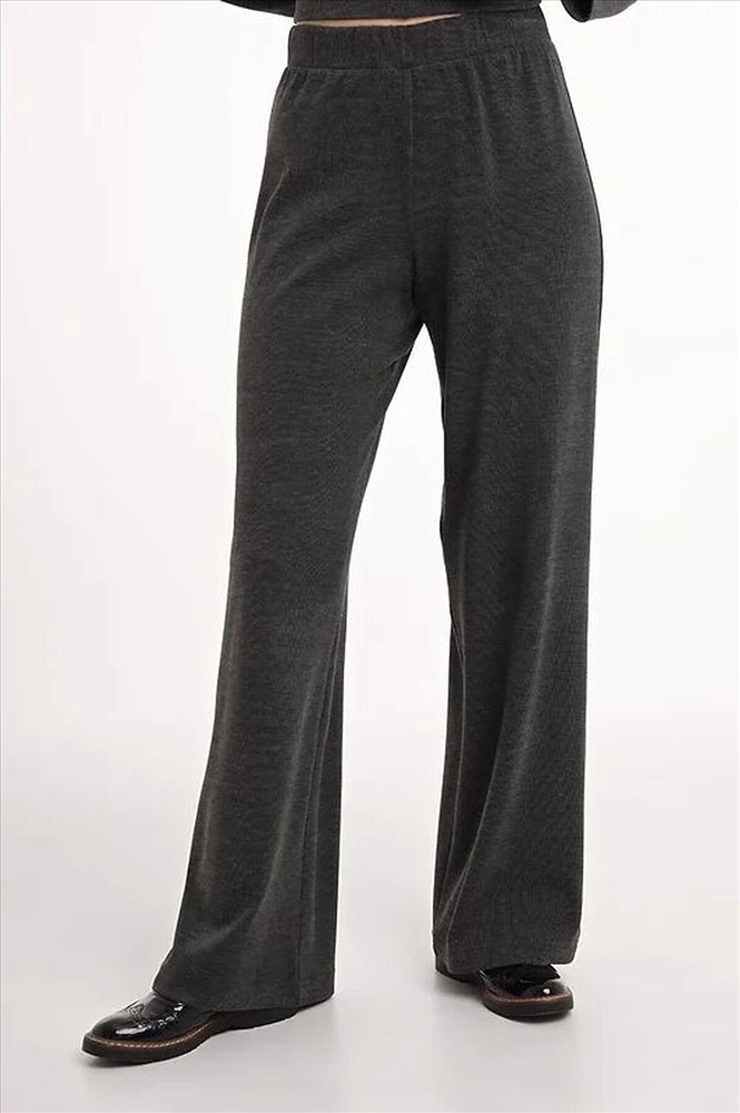 Широкие брюки из трикотажного полотна рибана с вискозой. Модель свободного, прямого кроя. Притачной пояс на внутренней резинке.