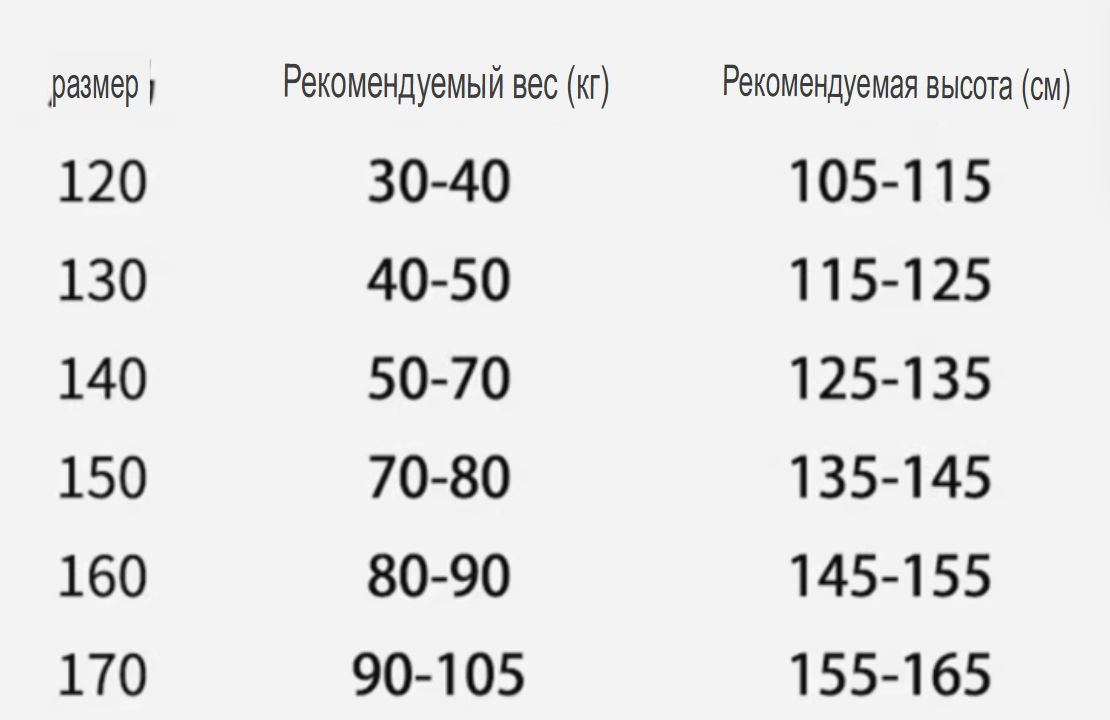Размер: 120, 130, 140, 150, 160, 170