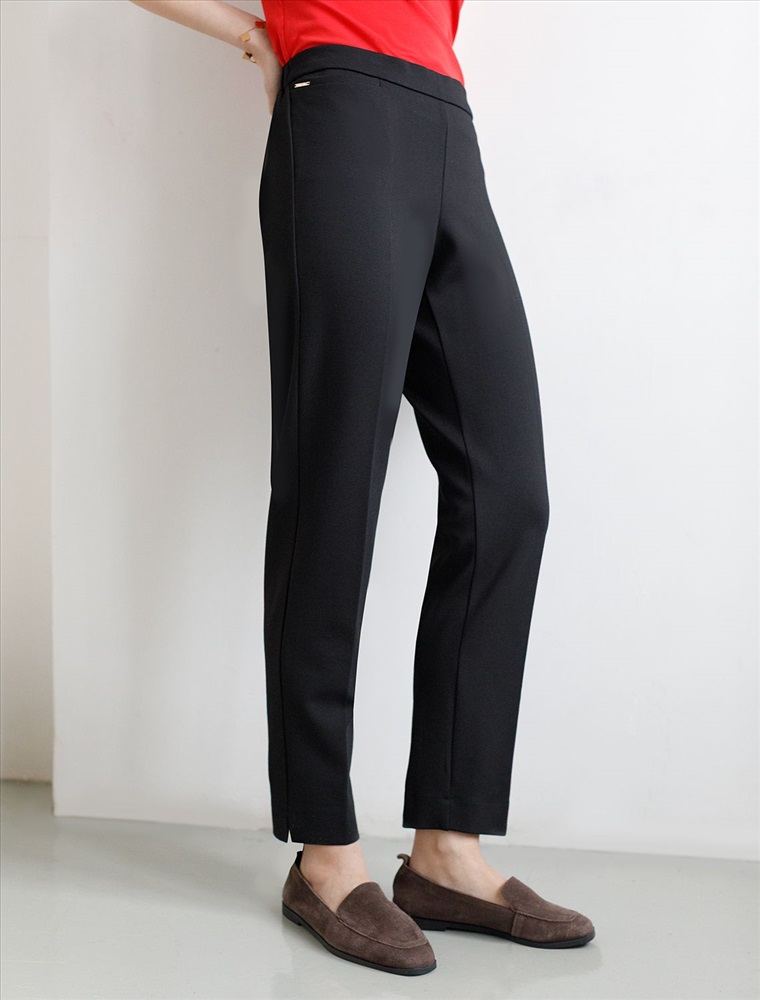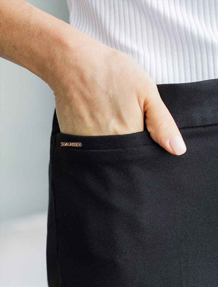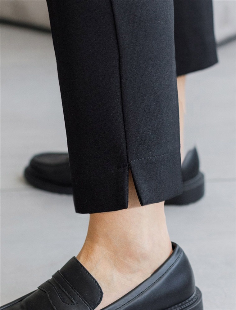 Плотность: 390 Г/м2 Брюки-дудочки выполнены из джерси. Модель дополнена резинкой сзади, одним вместительным карманом спереди и небольшими боковыми разрезами. Заутюженные стрелки и посадка на талии визуально вытягивают силуэт. Изделие хорошо держит форму, отлично тянется и почти не мнется во время использования. Идеальный вариант в офис или в повседневный классический стиль.