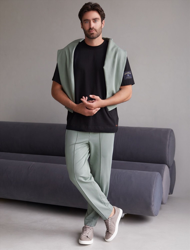 Плотность: 240 Г/м2 Размер товара на первом фото: 42 Свободные джоггеры светло-оливкого цвета созданы для максимального комфорта на каждый день. Брюки выполнены из натуральной ткани — премиального футера двухнитки, дополнены эластичным поясом со шнуром, двумя карманами на молнии по боками и задним карманом с минималистичной вышивкой в тон брюкам. Перевод надписи Wanderlust - Страсть к путешествиям . Брюки визуально вытягивают силуэт за счет декоративных застроченных стрелок. Эластичный качественный хлопок обеспечивает приятное ощущение, прилегая к телу, а также позволяет коже дышать. Ткань отличается высокой износостойкостью, не деформируется после стирки, сохраняет форму и внешний вид даже при активной носке. Повседневные спортивные штаны подходят для любого роста и комплекции благодаря представленной широкой размерной линейке. Подойдут на худых парней и мужчин в теле. Брюки правильного кроя, будут удобными для повседневной носки, не стесняя движений - идеальный выбор для отдыха дома, путешествий, для активной работы или прогулок. Трикотажные зауженные брюки отлично сочетаются с разными стилями одежды: от спортивного до кэжуал, с футболками и свитшотами. Это незаменимые джоггеры в современном гардеробе мужчины. Комментарии к товару