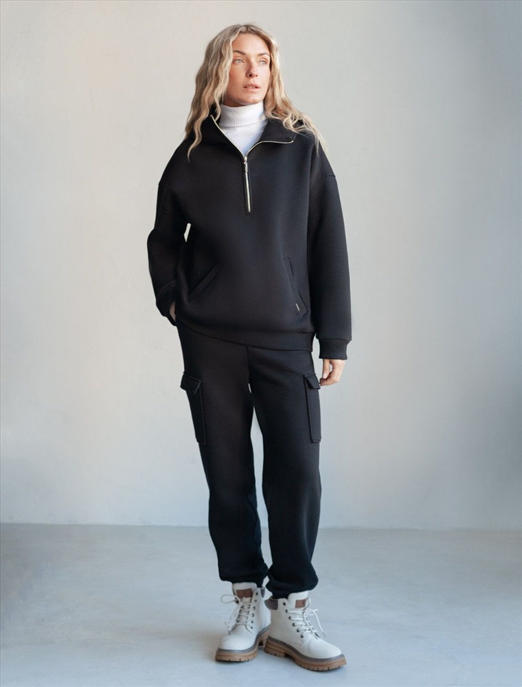 Плотность: 320 Г/м2 Размер товара на первом фото: 42 Практичные и комфортные свободные джоггеры черного цвета отлично подойдут для активного отдыха и повседневных прогулок. Теплые джоггеры выполнены из футера трехнитки с мягким начесом, обеспечивающего тепло и уют в прохладную погоду. Эластичная резинка на поясе гарантирует удобную посадку и свободу движений, а зауженные штанины создают современный стильный силуэт. Подойдут женщинам на любую фигуру, на объемные и женственные формы или на худеньких девушек, а так же на высокий или низкий рост, благодаря универсальной длине. Натуральный материал отличается высокой износостойкостью, поэтому штаны сохранят презентабельный вид даже после долгого периода активной носки. Эти функциональные брюки незаменимы для путешествий и спортивных занятий на улице. По бокам расположены большие карго карманы с клапаном, которые позволяют удобно хранить мелкие вещи под рукой. Спортивный стиль сочетается с элементами милитари, что делает трендовые брюки актуальными для современных тенденций. Универсальные джоггеры станут надежным выбором для тех, кто ценит практичность и комфорт в одежде на каждый день. Они идеально подходят для активного образа жизни, сочетая в себе стильные детали и комфорт. Комментарии к товару