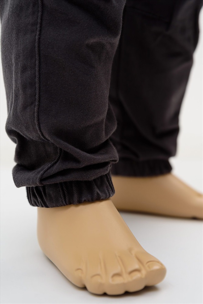 Страна производства: Россия Модные серые брюки для мальчика выполнены из натурального 100% хлопка. По низу брючин расположены манжеты. В поясе вставлена эластичная резинка с контрастным функциональным шнурком. Модель дополнена карманами по бокам.