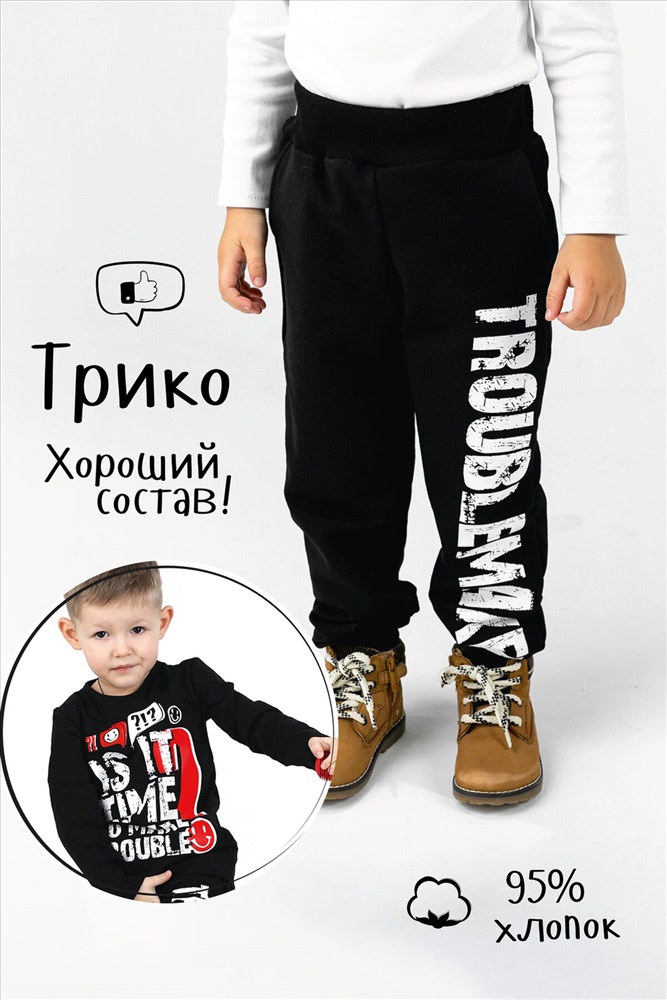 ID товара: 880682 Состав: Хлопок 74%, Полиэстер 21%, Лайкра 5% Сезон: Демисезон Длина: Полная Фасон: Спортивный Вид застежки: Шнурок Рисунок: Надпись Тип карманов: В шве Декоративные элементы: Принт Основная ткань: Футер 2-х нитка Стиль: Спортивный Страна бренда: Россия Страна производства: Россия Брюки для детей дошкольного и младшего школьного возраста из трикотажного полотна футер с лайкрой и кашкорсе. Штаны на поясе из эластичного трикотажа с резинкой внутри, низ брюк на манжете из эластичного трикотажа. На передней части штанин боковые карманы. Комментарии к товару