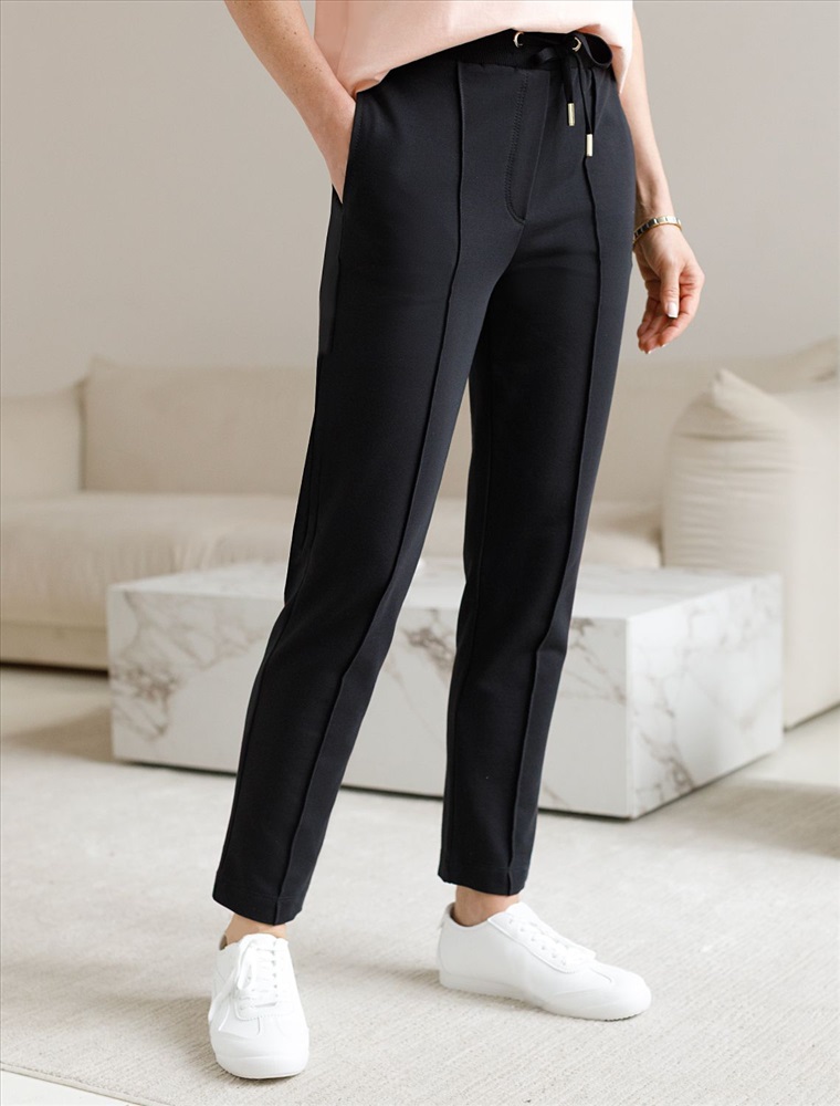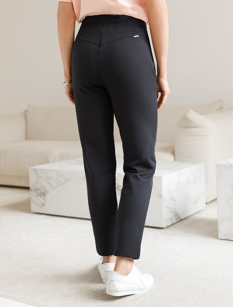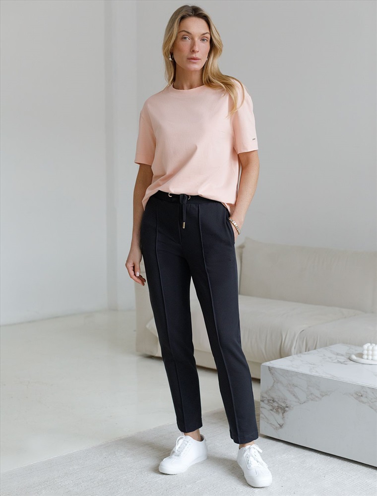 Плотность: 240 Г/м2 Брюки выполнены из эластичного футера-двухнитки. Модель дополнена застроченными стрелками, что визуально вытягивает силуэт. Эластичный пояс на резинке с хлопковым шнурком и металлической фурнитурой. Брюки сочетаются в костюме с футболкой D49.031 и бомбером D49.038 Комментарии к товару