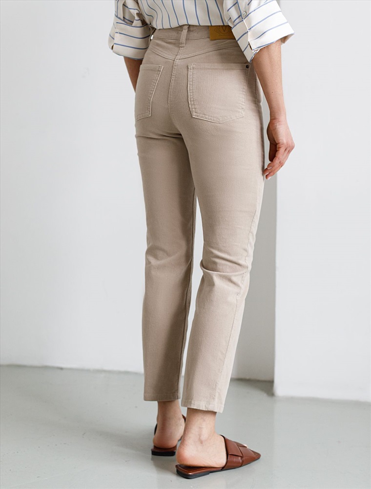 Размер товара на первом фото: 42 Вельветовые брюки женские зауженные в фасоне мом слим станут идеальным дополнением к теплому образу осенью и зимой. Они выполнены из мягкой хлопковой эластичной ткани, которая обеспечивает комфорт и защищает от холода. Модель с высокой посадкой отлично сидит на фигуре, представлен широкий размерный ряд. Также брюки подойдут невысоким девушкам и женщинам. Брюки скроют недостатки фигуры, вытягивают силуэт и удлиняют ноги, благодаря завышенной талии. Пять карманов, как у джинс, добавляют функциональности, а высококачественная фурнитура гарантирует надёжность. Актуальная однотонная расцветка позволит легко комбинировать штаны с другими вещами из гардероба. Брюки джинсы хорошо комбинируется с вязаным трикотажем, блузками и денимом. Как альтернатива классическим брюкам, в нестрогий офисный дресс-код.