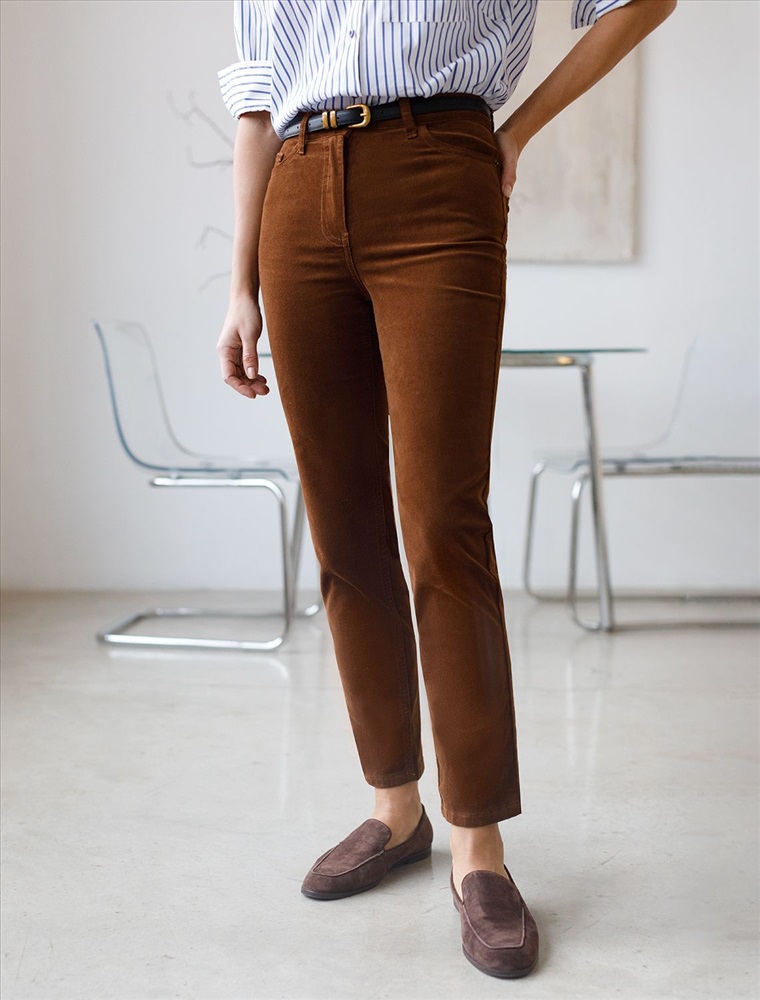 Плотность: 310 Г/м2 Размер товара на первом фото: 42 Вельветовые брюки женские зауженные в фасоне мом слим станут идеальным дополнением к теплому образу осенью и зимой. Они выполнены из мягкой хлопковой эластичной ткани, которая обеспечивает комфорт и защищает от холода. Модель с высокой посадкой отлично сидит на фигуре, представлен широкий размерный ряд. Также брюки подойдут невысоким девушкам и женщинам. Брюки скроют недостатки фигуры, вытягивают силуэт и удлиняют ноги, благодаря завышенной талии. Пять карманов, как у джинс, добавляют функциональности, а высококачественная фурнитура гарантирует надёжность. Актуальная однотонная расцветка позволит легко комбинировать штаны с другими вещами из гардероба. Брюки джинсы хорошо комбинируется с вязаным трикотажем, блузками и денимом. Как альтернатива классическим брюкам, в нестрогий офисный дресс-код. Комментарии к товару