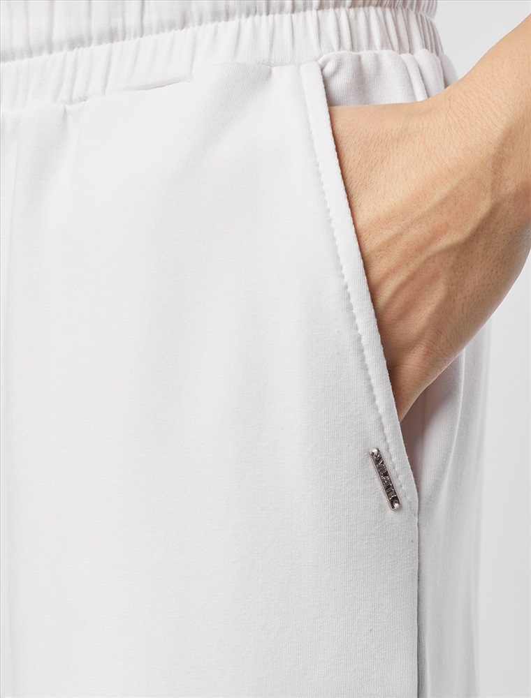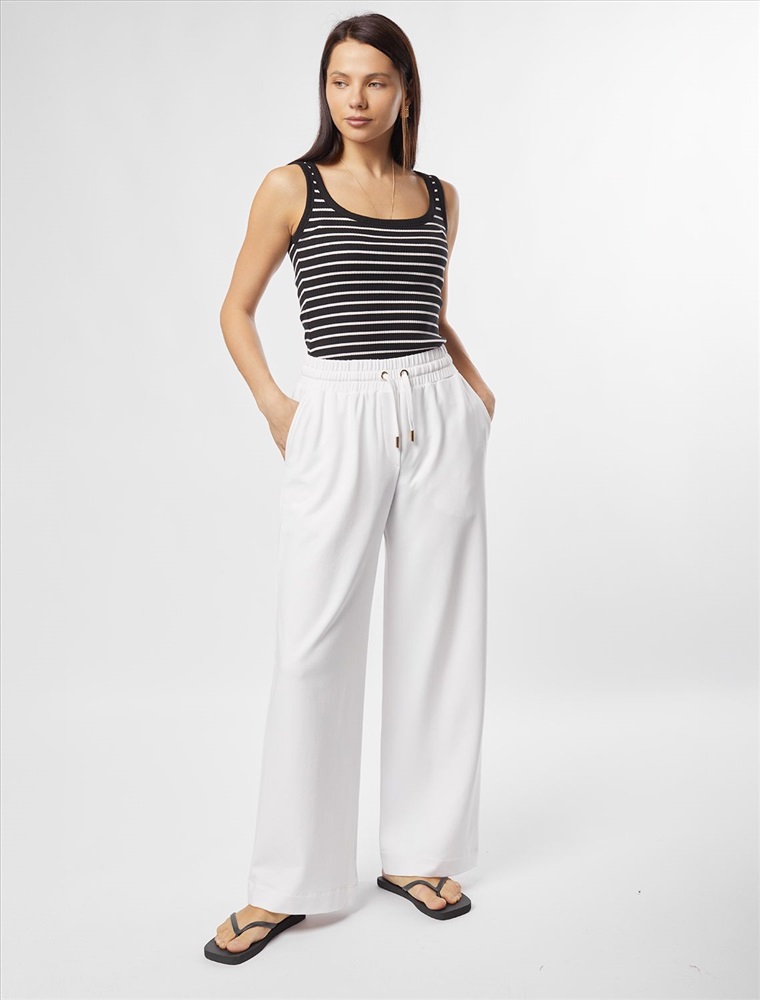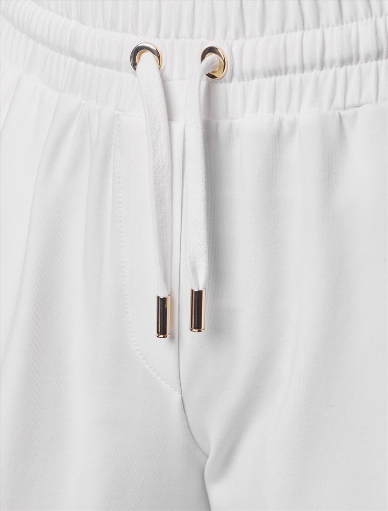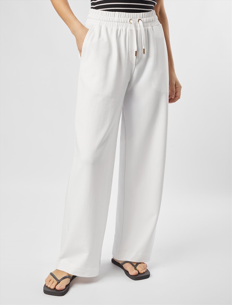Плотность: 240 Г/м2 Параметры модели на первом фото: Рост 172, бюст 88, талия 64, бедра 88 Брюки выполнены из футера двухнитки с эластаном. Модель прямого кроя дополнена боковыми карманами и одним задним карманом. Пояс выполнен из эластичного трикотажа в рубчик. В пояс вставлен плоский хлопковый шнур в тон изделия с золотистыми наконечниками. Изделие дополнено металлическим логотипом бренда. Сочетается в костюме с жакетом D49.078, джемпером D49.079, D49.080 и футболкой D49.081 Комментарии к товару