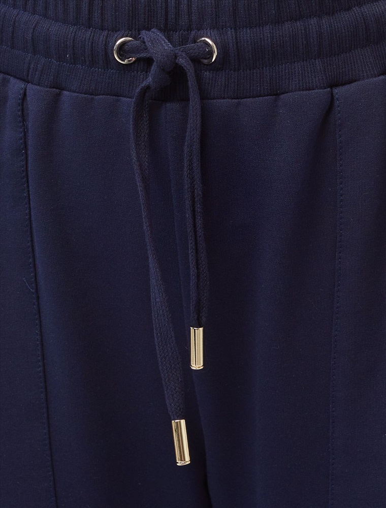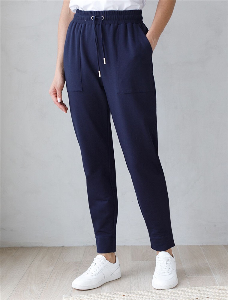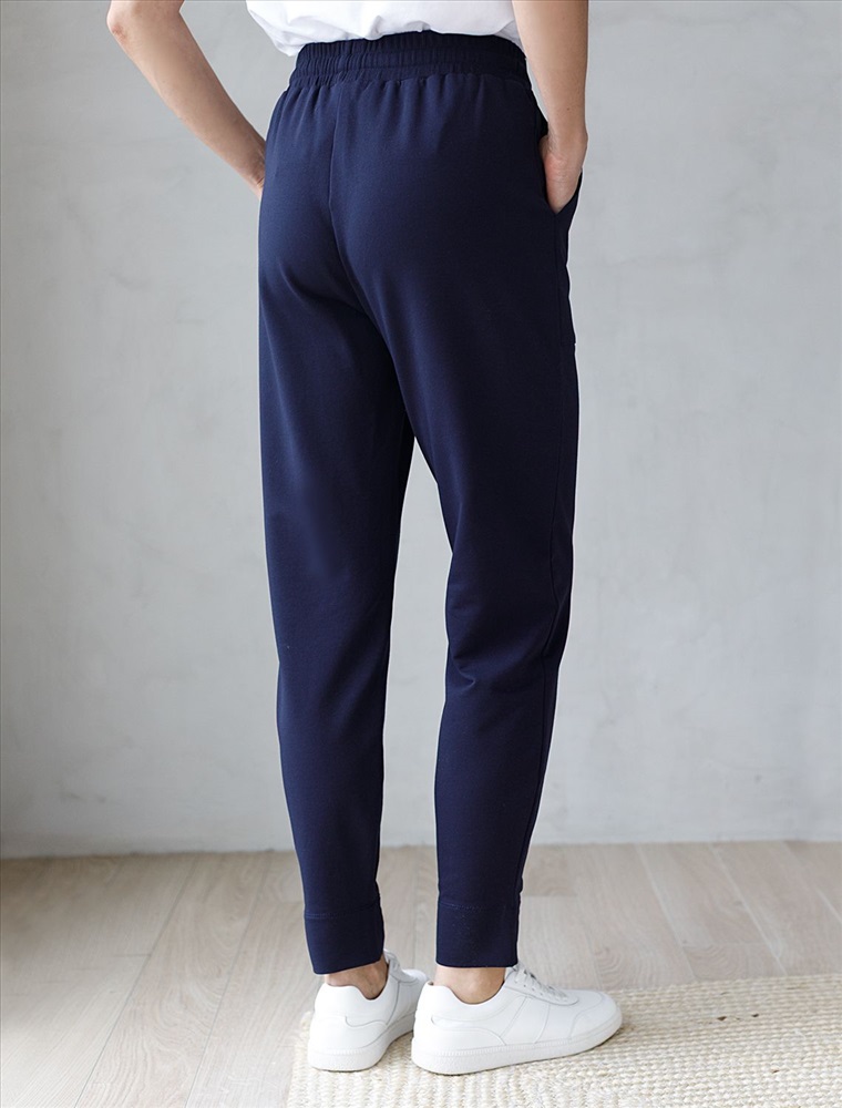 Плотность: 240 Г/м2 Параметры модели на первом фото: Рост 172, бюст 88, талия 64, бедра 88 Брюки выполнены из футера двухнитки с эластаном. Модель зауженная к низу дополнена карманами и эластичным поясом с фактурой в рубчик. В пояс вставлен плоский хлопковый шнур в тон изделия с золотистыми наконечниками. Изделие дополнено металлическим логотипом бренда. Сочетается в костюме с жакетом D49.078, джемпером D49.079, D49.080 и футболкой D49.081 Комментарии к товару