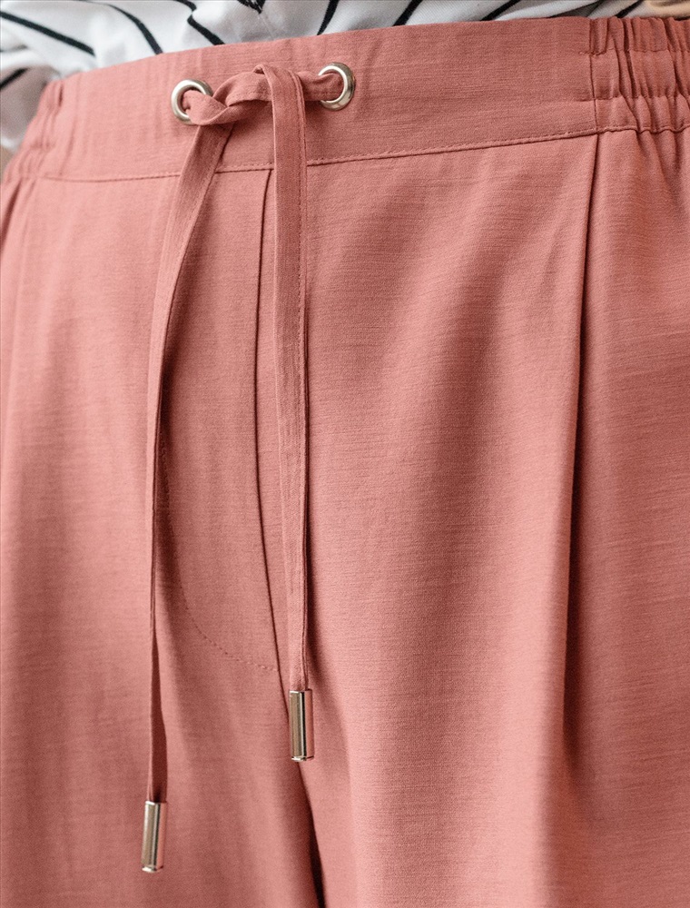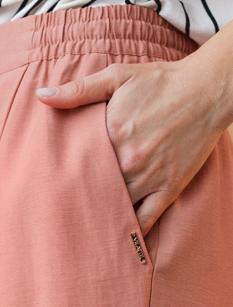 Параметры модели на первом фото: Рост 172, бюст 88, талия 64, бедра 88 Брюки выполнены из плотного лиоцелла. Модель дополнена карманами и поясом с эластичной резинкой и регулируемым шнурком с золотистой фурнитурой. Ткань изделия отлично держит форму, плавно драпируется и не просвечивает. В теплое время года приятно охлаждает кожу. Добавление синтетических волокон в составе изделия, предотвращает сминаемостьи поддерживает формоустойчивость. Брюки сочетаются в костюме с топом D23.063 и блузкой D29.266, D29.267 и жилетом D27.002