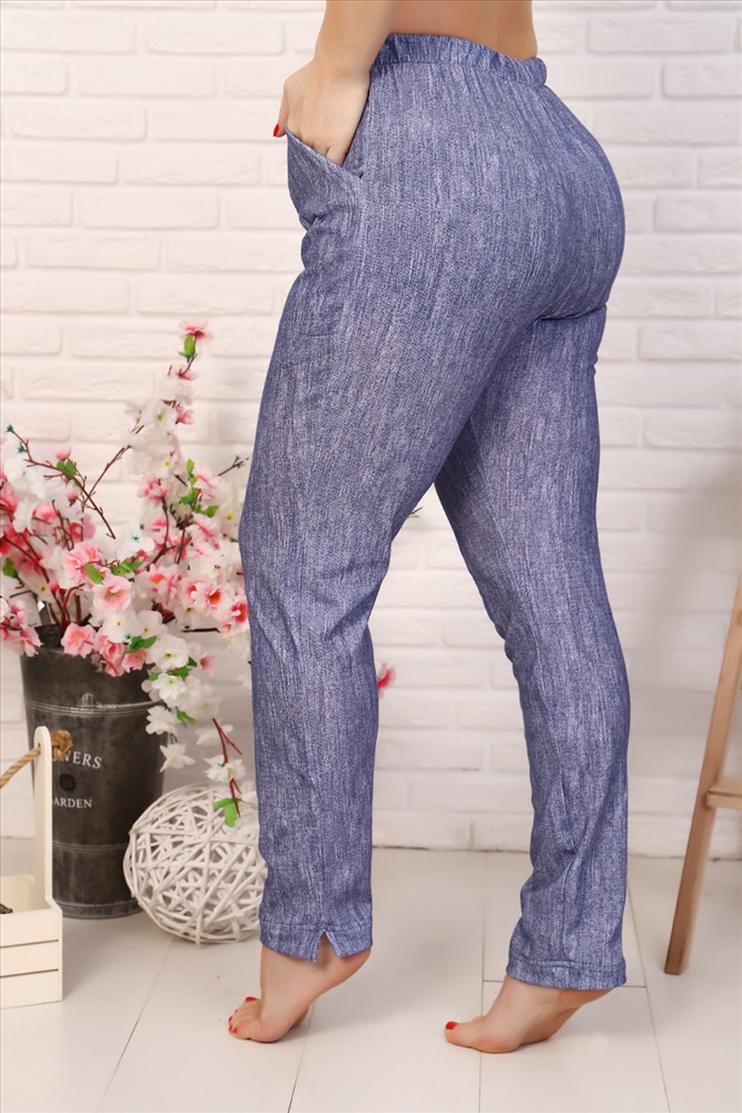 Застежка: без застежки Брюки женские, с отрезным поясом на резинке, с карманами.