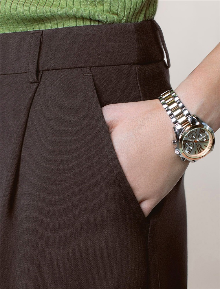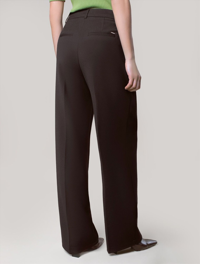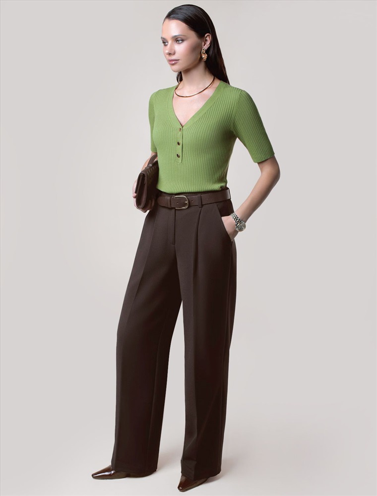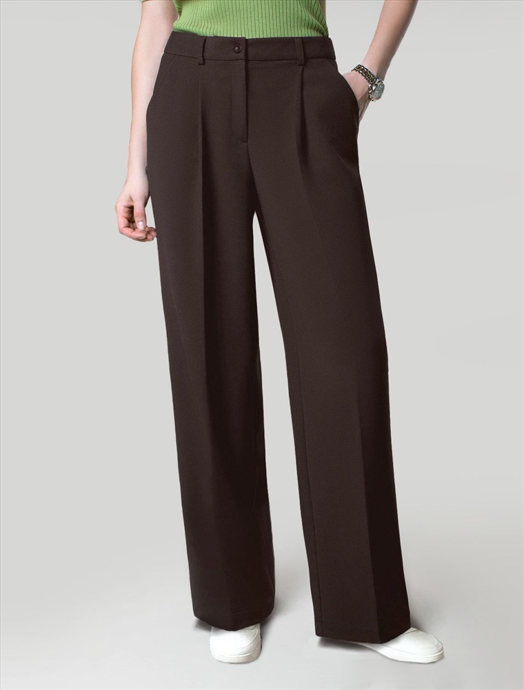 Брюки-палаццо выполнены из эластичной поливискозы. Легкая и струящаяся ткань идеально подойдет для повседневных образов. Модель с высокой посадкой визуально стройнит и вытягивает силуэт, удлиняет ноги. По верхнему краю спереди классически заложены складки, что придает свободы и простора в районе бедер. Свободный силуэт подходит для любой фигуры.