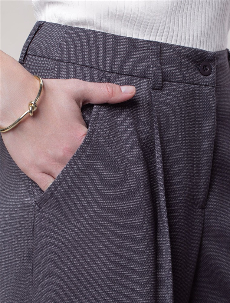 Брюки-палаццо выполнены из эластичной поливискозы. Легкая и струящаяся ткань идеально подойдет для повседневных образов. Модель с высокой посадкой визуально стройнит и вытягивает силуэт, удлиняет ноги. По верхнему краю спереди классически заложены складки, что придает свободы и простора в районе бедер. Свободный силуэт подходит для любой фигуры.