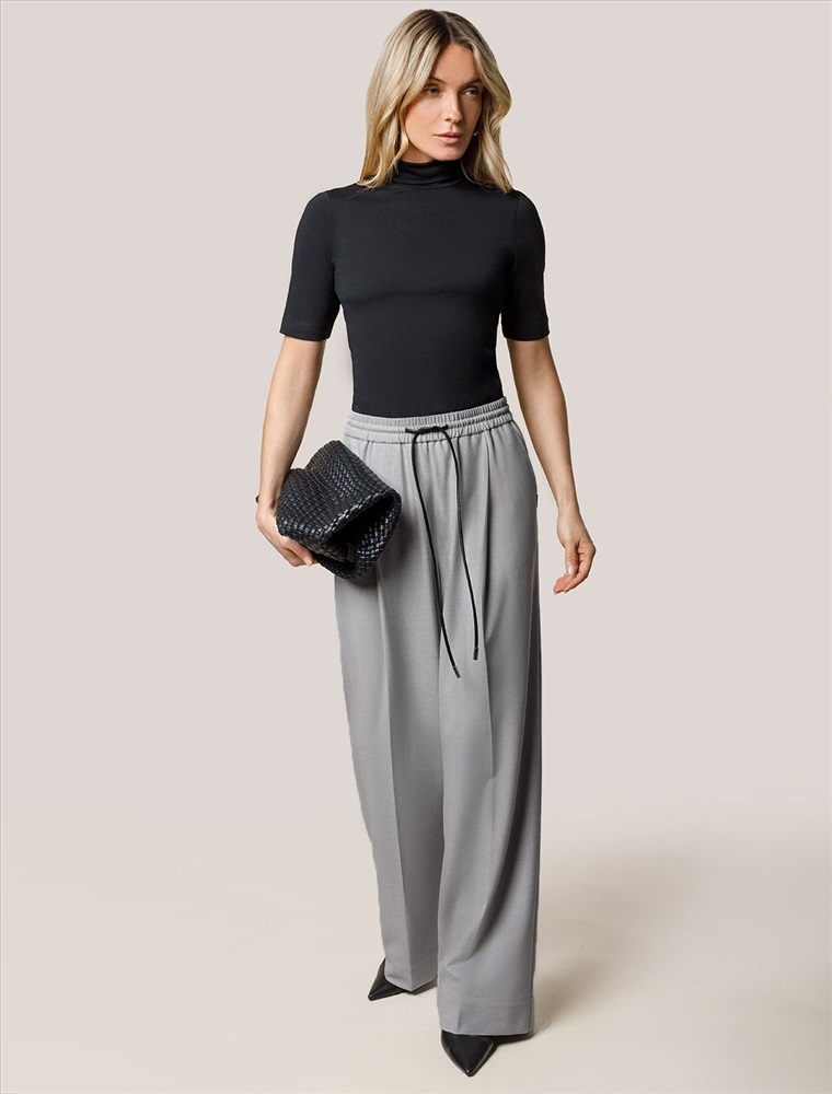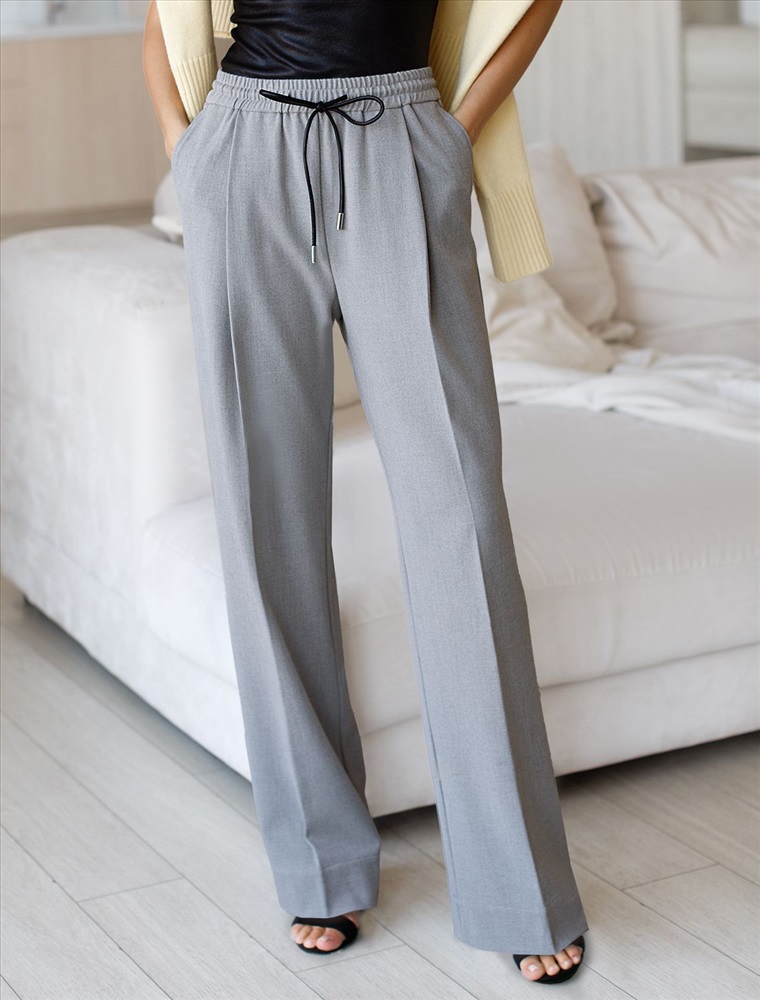 Брюки-палаццо выполнены из эластичной поливискозы. Легкая и струящаяся ткань идеально подойдет для повседневных образов. Модель с высокой посадкой визуально стройнит и вытягивает силуэт, удлиняет ноги. Пояс на эластичной резинке с шнуром из эко-кожи. По верхнему краю спереди классически заложены складки, что придает свободы и простора в районе бедер. Свободный силуэт подходит для любой фигуры.