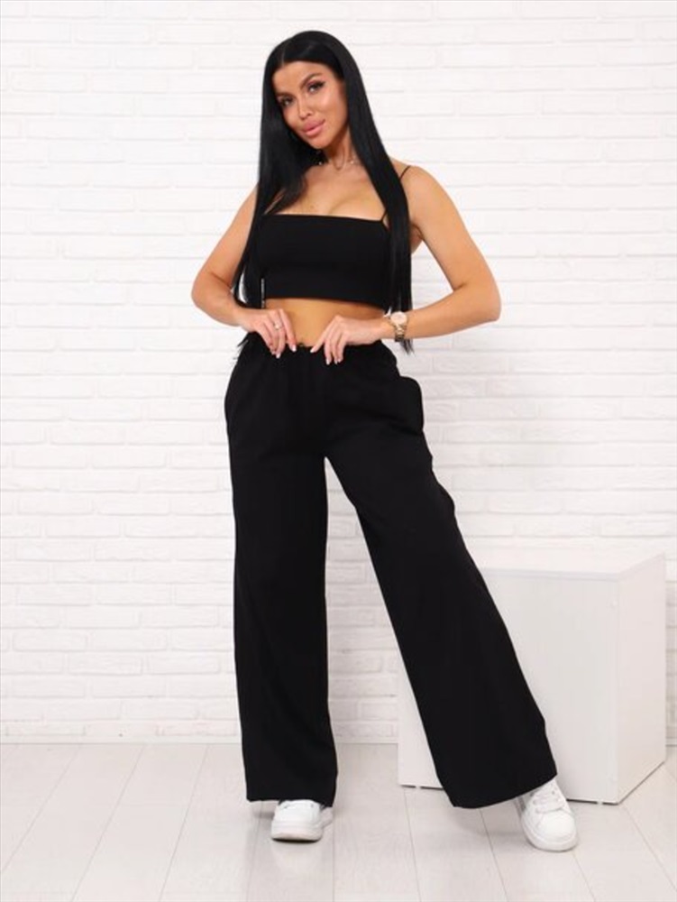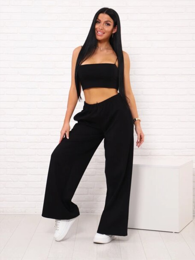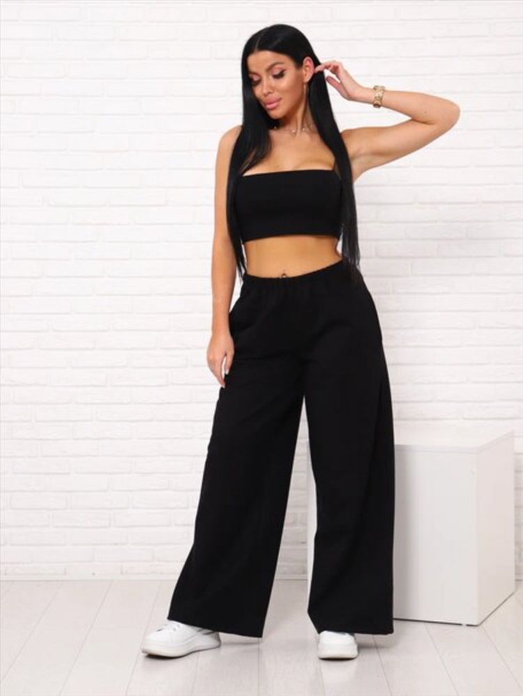 Застежка: без застежки Брюки палаццо женские из футера двухнитки, длинные.