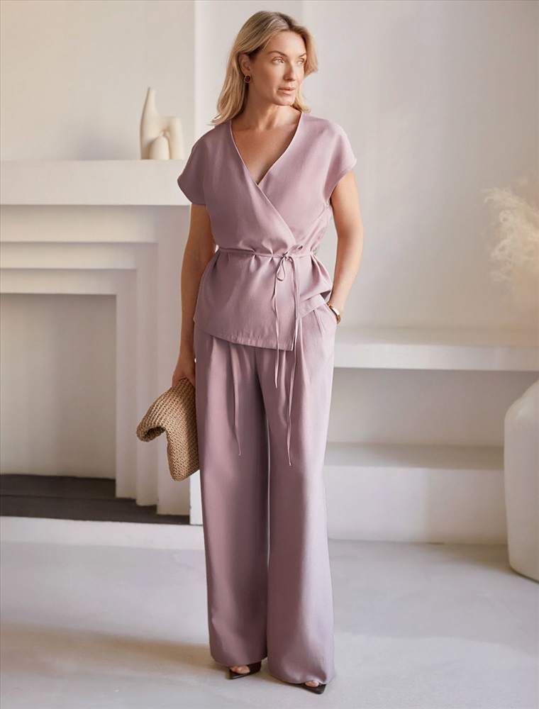 Плотность: 180 Г/м2 Брюки палаццо нежного зефирно-розового цвета выполнены из плотного лиоцелла. Лиоцелл это более дорогой и экологичный вариант вискозы, очень прочный и шелковистый. Ткань отличается от регулярной коллекции из лиоцелла - она содержит еще больше лиоцелла (92%), благодаря чему имеет более нежную шелковистую фактуру. Свободные прямые брюки с высокой посадкой визуально вытягивают и стройнят фигуру. Удобные карманы по бокам и свободный крой делают эти брюки базовым элементом гардероба. Летние брюки отлично сочетаются с монохромным верхом, с ними можно создавать эффектные наряды как на выход, так и для ежедневных рабочих дел или простых прогулок, от делового шика до повседневного кэжуал. Комплект из лиоцелла подчеркнет ваш вкус и статус. Это идеальный выбор для особенных моментов. Такой образ будет уместен на торжественных мероприятиях и приемах, выпускных вечерах, семейных праздниках и свадьбах. Рекомендуем сочетать с артикулами: D27.004, D23.079, D29.356 Комментарии к товару