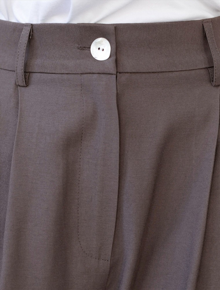 Плотность: 180 Г/м2 Брюки палаццо кофейного цвета выполнены из плотного лиоцелла. Лиоцелл это более дорогой и экологичный вариант вискозы, очень прочный и шелковистый. Ткань отличается от регулярной коллекции из лиоцелла - она содержит еще больше лиоцелла (92%), благодаря чему имеет более нежную шелковистую фактуру. Свободные прямые брюки с высокой посадкой визуально вытягивают и стройнят фигуру. Удобные карманы по бокам и свободный крой делают эти брюки базовым элементом гардероба. Летние брюки отлично сочетаются с монохромным верхом, с ними можно создавать эффектные наряды как на выход, так и для ежедневных рабочих дел или простых прогулок, от делового шика до повседневного кэжуал. Комплект из лиоцелла подчеркнет ваш вкус и статус. Это идеальный выбор для особенных моментов. Такой образ будет уместен на торжественных мероприятиях и приемах, выпускных вечерах, семейных праздниках и свадьбах. Рекомендуем сочетать с артикулами: D27.004, D23.079, D29.356 Комментарии к товару