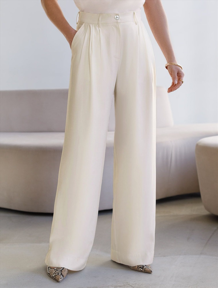 Плотность: 180 Г/м2 Брюки палаццо натурального белого цвета выполнены из плотного лиоцелла. Лиоцелл это более дорогой и экологичный вариант вискозы, очень прочный и шелковистый. Ткань отличается от регулярной коллекции из лиоцелла - она содержит еще больше лиоцелла (92%), благодаря чему имеет более нежную шелковистую фактуру. Свободные прямые брюки с высокой посадкой визуально вытягивают и стройнят фигуру. Удобные карманы по бокам и свободный крой делают эти брюки базовым элементом гардероба. Летние брюки отлично сочетаются с монохромным верхом, с ними можно создавать эффектные наряды как на выход, так и для ежедневных рабочих дел или простых прогулок, от делового шика до повседневного кэжуал. Комплект из лиоцелла подчеркнет ваш вкус и статус. Это идеальный выбор для особенных моментов. Такой образ будет уместен на торжественных мероприятиях и приемах, выпускных вечерах, семейных праздниках и свадьбах. Рекомендуем сочетать с артикулами: D27.004, D23.079, D29.356 Комментарии к товару
