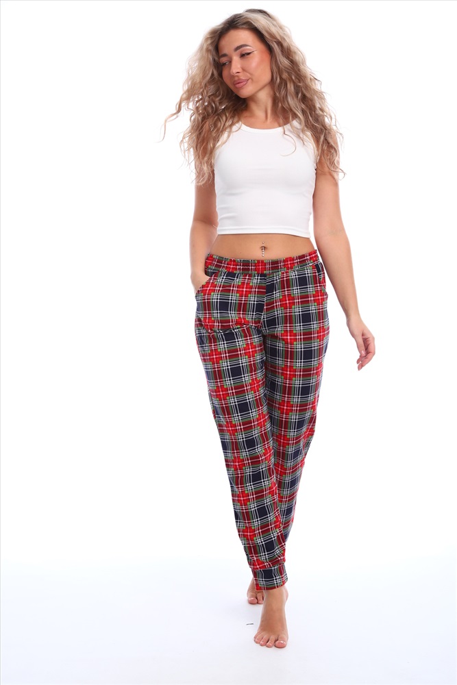 Застежка: без застежки Женские брюки для дома созданы для максимального комфорта и уюта в повседневной жизни. Модель выполнена из мягкого текстиля на основе хлопка, что делает изделие особенно легким и приятным к телу. Трикотажные штаны с резинкой на поясе обеспечивают отличную посадку по фигуре, не стесняют движений и подходят для разных размеров, в том числе больших. Это отличный выбор одежды для сна или отдыха после насыщенного дня. Джоггеры с боковыми карманами позволяют удобно разместить необходимые мелочи, сохраняя практичность и стиль одновременно. Классический крой с прямыми штанинами подходит как для беременных женщин, так и для тех, кто ценит свободу движений и комфорт каждый день. Приятный принтом добавляет индивидуальности вашему образу вы сможете выбрать вариант, который подчеркнет ваш стиль. Трикотажная ткань отличается высоким качеством пошива и долговечностью. Материал дышащий, не вызывает раздражения даже при длительном ношении. Брюки идеально подойдут как повседневные: их можно надевать дома, брать с собой в поездки или использовать как пижамные штаны для спокойного сна. Средняя посадка подходит большинству типов фигур, а эластичная резинка на талии гарантирует удобство независимо от вашего размера. Такие женские брюки станут незаменимой частью гардероба в любое время года благодаря универсальному дизайну и функциональности. Для любительниц домашнего уюта эти трикотажные джоггеры станут настоящей находкой: они отлично сочетаются с футболками, свитшотами или майками. Карманы сбоку позволят держать под рукой все необходимое например телефон или ключи во время домашних дел. Мягкий хлопковый материал способствует хорошей терморегуляции: вам будет комфортно как летом, так и зимой. Пижамные штаны подходят не только для отдыха дома или сна они также могут стать частью стильного повседневного образа благодаря универсальному дизайну и актуальным деталям оформления.