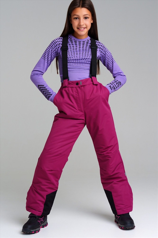 Брюки утепленные из мембранной ткани 5000*5000. Линия Nord - высокая степень теплозащиты. Температурный режим до -25С. Подкладка - флис. Материал верха с ветрозащитной и водоотталкивающей пропиткой. Застёжка на молнию. Эластичные регулируемые по длине лямки. Внутренний снегозащитный манжет на брюках с резинкой snow stopper. Светоотражающие элементы. *температурный режим является рекомендованным, необходимо учитывать уровень активности ребенка и многослойность поддевочной одежды.