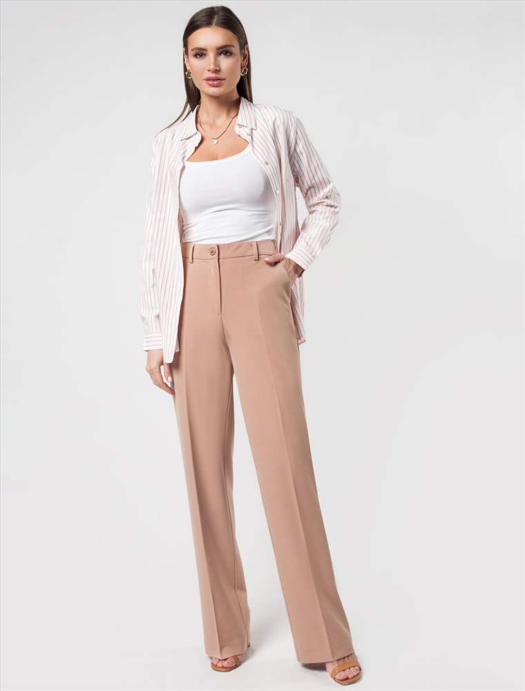 Параметры модели на первом фото: Рост 172, бюст 88, талия 64, бедра 88 Брюки прямого кроя с – универсальный предмет весеннего гардероба. Высокая посадка и стрелки зрительно увеличивают рост и визуально стройнят. Ткань брюк: поливискоза с эластаном, гарантирует непревзайденный комфорт и формоустойчивость, хорошо тянется и не мнется. В таких брюках будет комфортно даже летом, благодаря наличию вискозы в ткани. Тело будет всегда дышать. Классическая длина отлично сочетается с обувью в любом стиле и подходит всем типам фигуры. Комментарии к товару
