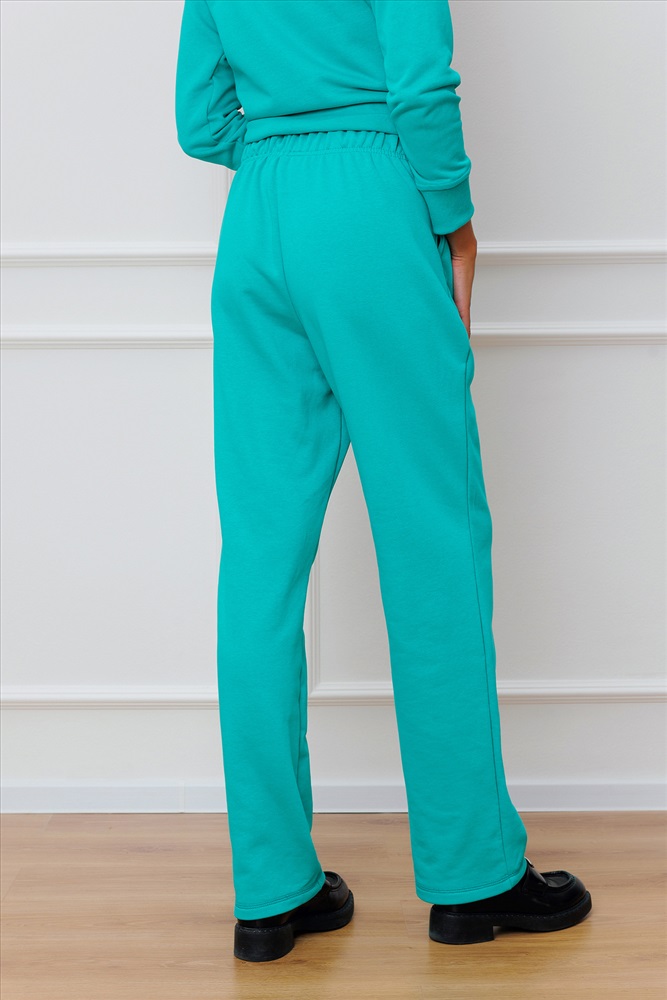Застежка: без застежки Повседневные женские брюки Raposa в спортивном стиле, станут отличным дополнением к вашему гардеробу. Cовременный дизайн и комфортная посадка позволят вам чувствовать себя уверенно и стильно в любой ситуации. Модель доступна в двух расцветках: яркий зелено-бирюзовый и графитовый. Штаны имеют прямой крой, который подчеркнет вашу фигуру и создаст элегантный образ. Пояс на эластичной резинке, что обеспечивает идеальную посадку на талии и комфорт при движении. Декоративная отстрочка по всей длине изделия придает брюкам особый шарм и стильный вид. Она создает эффектный контраст и привлекает внимание к деталям. Брюки осенние отлично сочетаются с различным верхом и обувью, позволяя создавать разнообразные образы. Рекомендуем полный образ со свитшотом Raposa.