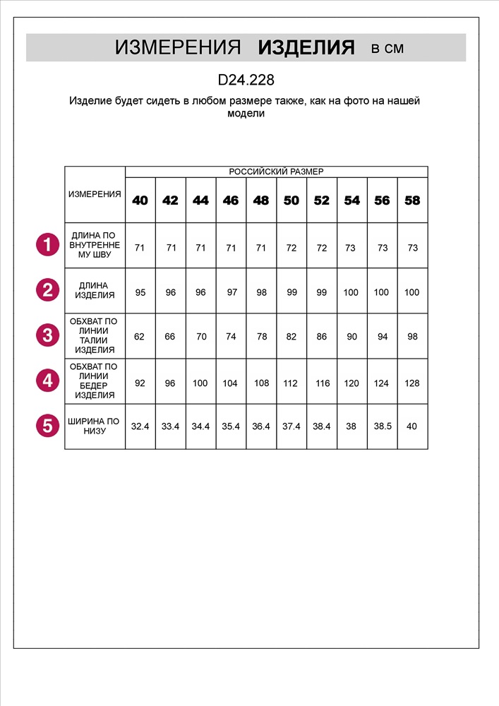 Плотность: 210 Г/м2 Параметры модели на первом фото: Рост 172, бюст 88, талия 64, бедра 88 Брюки выполнены из премиальной поливискозы. Модель дополнена поясом на резинке с регулируемым шнурком. Изделие хорошо подойдет как для строгого делового образа с блузкой и жакетом, так и для более расслабленного с футболкой и водолазкой. Эластичный материал изделия поддерживает оптимальный микроклимат, формоустойчивость и комфорт в течение всего дня. Комментарии к товару