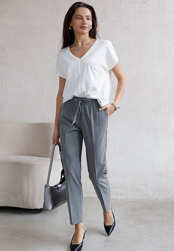Плотность: 250 Г/м2 Параметры модели на первом фото: Рост 172, бюст 88, талия 64, бедра 88 Брюки выполнены из премиальной поливискозы. Модель дополнена поясом на резинке с регулируемым шнурком. Изделие хорошо подойдет как для строгого делового образа с блузкой и жакетом, так и для более расслабленного с футболкой и водолазкой. Эластичный материал изделия поддерживает оптимальный микроклимат, формоустойчивость и комфорт в течение всего дня. Комментарии к товару