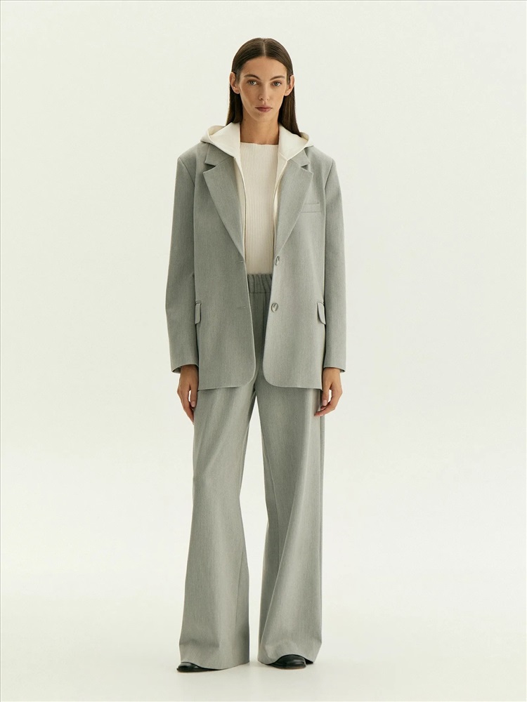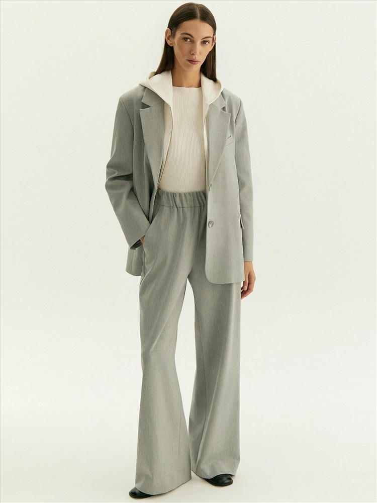 Брюки в сером цвете для стильных повседневных образов. Модель без застёжки выполнена на удобной широкой кулиске и имеет среднюю посадку. Выделяющаяся застроченная складка придаёт оригинальности. По бокам располагаются аккуратные прорезные карманы. Завершить образ с брюками можно жакетом из комплекта.