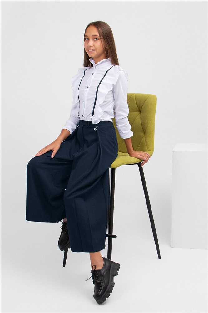 Страна производства: Россия Стильные кюлоты для подростков и молодых мамочек из приятного габардина, хорошо держат форму, не мнутся, подходят как на каждый день, так и на торжественное мероприятие. Размер 128 (рост 122-128 см) длина изделия по внешнему шву 66 см, по-внутреннему 41 см, обхват талии 52 см. Размер 134 (рост 128-134 см) длина изделия по внешнему шву 68 см, по-внутреннему 43 см, обхват талии 54 см. Размер 140 (рост 134-140 см) длина изделия по внешнему шву 73 см, по-внутреннему 45 см, обхват талии 56 см. Размер 146 (рост 140-146 см) длина изделия по внешнему шву 76 см, по-внутреннему 48 см, обхват талии 60 см. Размер 152 (рост 146-152 см) длина изделия по внешнему шву 81 см, по-внутреннему 52 см, обхват талии 62 см. Размер 158 (рост 152-158 см) длина изделия по внешнему шву 83 см, по-внутреннему 53 см, обхват талии 64 см. Размер 164 (рост 158-164 см) длина изделия по внешнему шву 87 см, по-внутреннему 56 см, обхват талии 66 см. Размер 170 (рост 164-170 см) длина изделия по внешнему шву 93 см, по-внутреннему 60 см, обхват талии 68 см. Размер 176 (рост 170-176 см) длина изделия по внешнему шву 95 см, по-внутреннему 62 см, обхват талии 72 см.