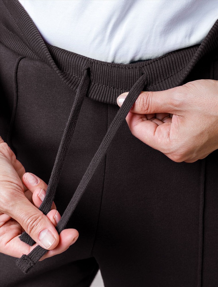 Плотность: 320 Г/м2 Размер товара на первом фото: 42 Сочетается с артикулами: D49.061, D49.102, D49.103 Теплые брюки прямого кроя с удобным поясом на резинке и карманами по бокам выполнены из премиального футера-трехнитки. Наличие эластана в составе гарантирует комфорт и долговечность изделия, материал хорошо пропускает воздух, позволяя телу дышать, а мягкий начес обеспечивает дополнительное тепло и комфорт в прохладную погоду. Эти уютные брюки практичного черного цвета созданы для вашего комфорта. Свободный прямой крой обеспечивает свободу движений и максимальное удобство в любых ситуациях, поэтому они подойдут и на большие размеры, а так же на высокий или низкий рост. Фигура подчеркивается, а силуэт визуально вытягивается за счет кроя палаццо и застроченных декоративных стрелок. В повседневных трикотажных брюках вы будете чувствовать себя комфортно и уверенно, наслаждаясь каждым моментом дня. Комментарии к товару
