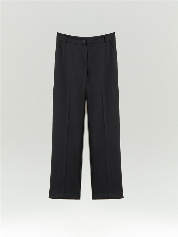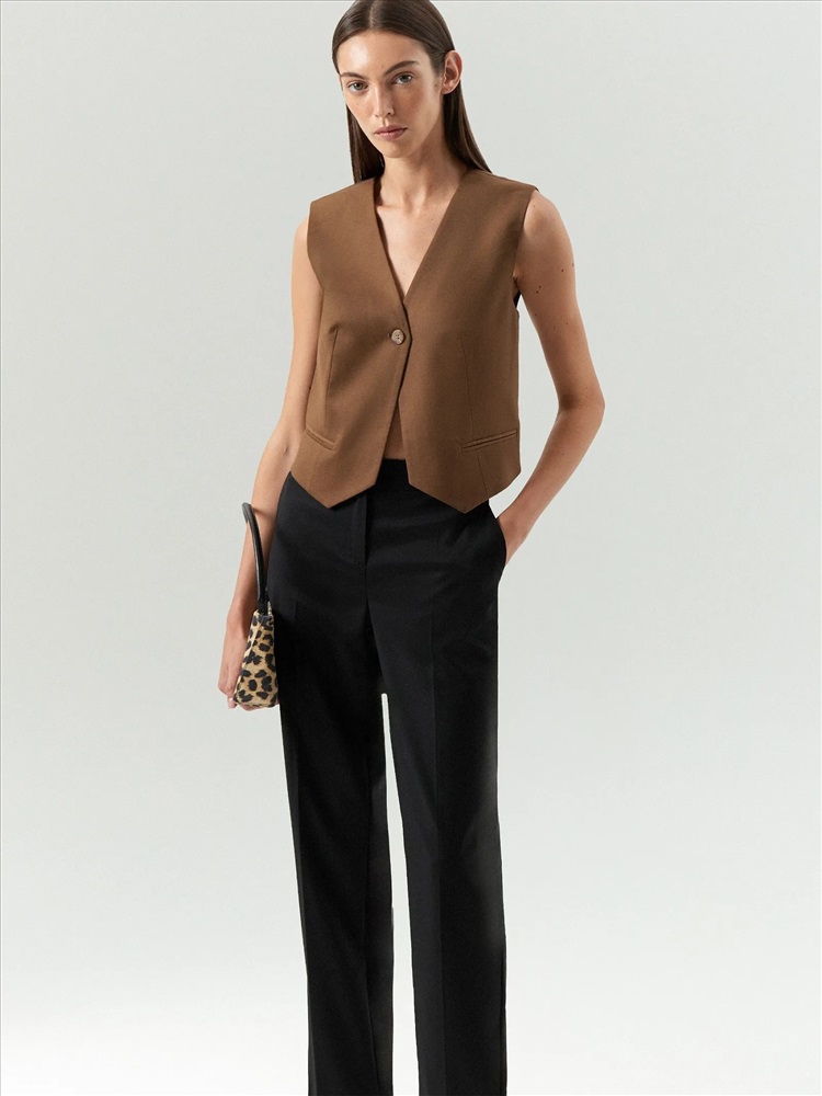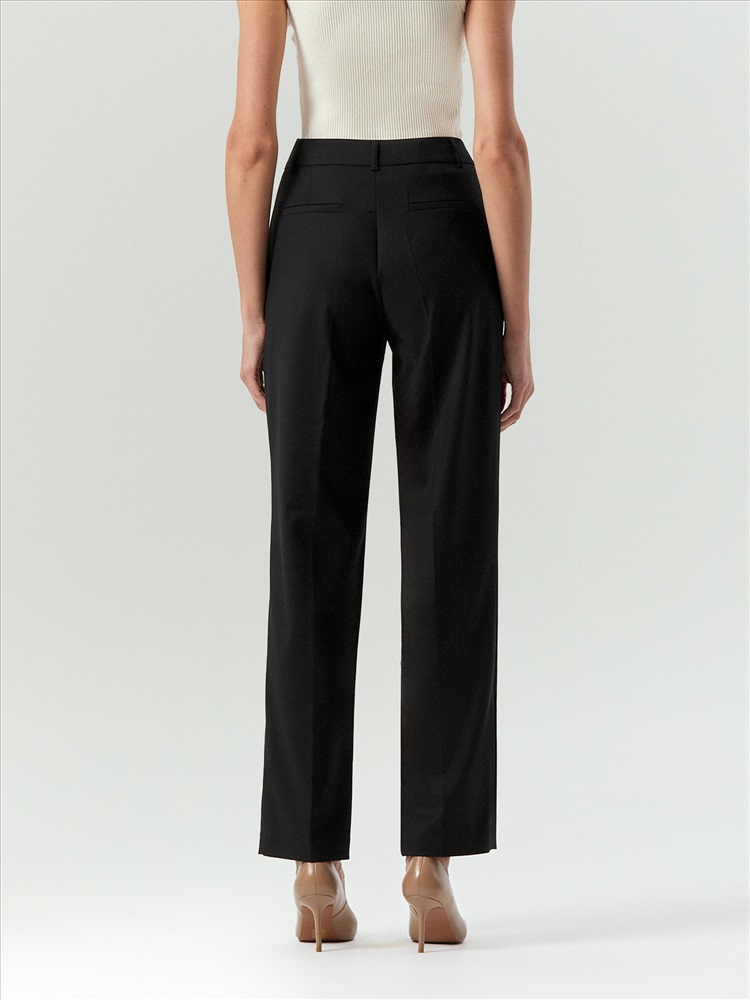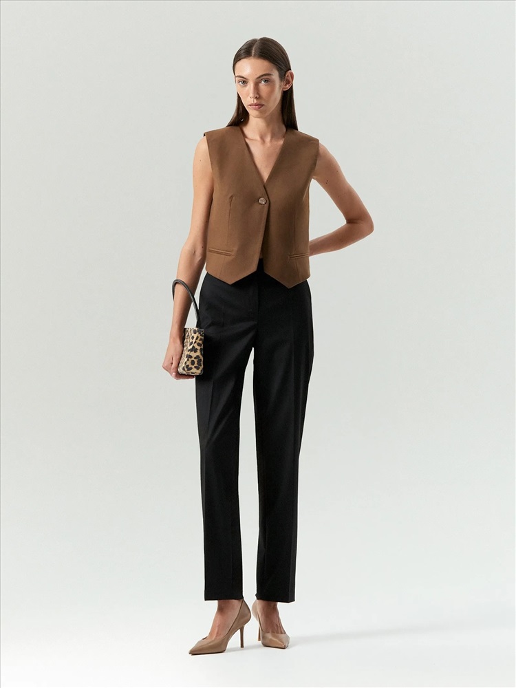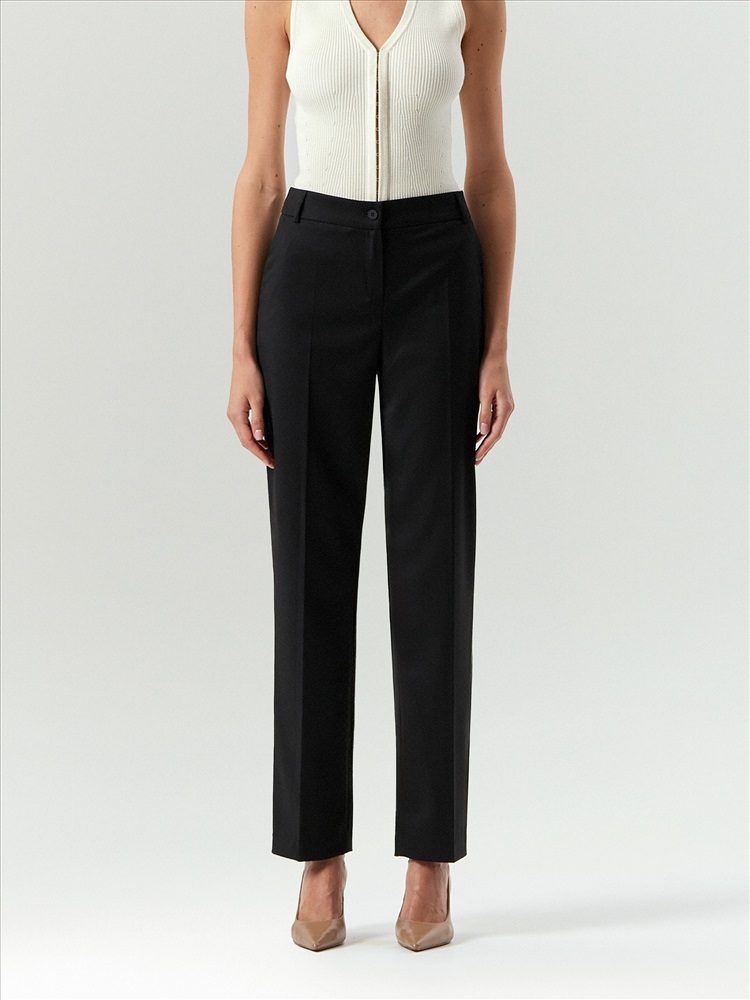 Чёрные брюки на каждый день и к особым случаям. Стильная зауженая модель имеет среднюю посадку. В составе материала есть шерсть и вискоза, что делает брюки комфортным вариантом на любой сезон. Завершить образ можно нежной блузкой, элегантным лонгсливом, деловой рубашкой или романтичным топом. Брюки могут стать частью капсулы с юбкой aspect.