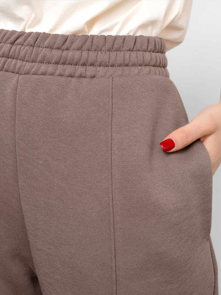 Состав: 30% полиэстер, 70% хлопок Модель: Брюки женские 182410 Тип товара: брюки Материал: футер 3-х нитка с начесом | футер 3-х нитка с начесом Бренд: Mark Formelle Карман: боковые НДС: 22% Особенности: на резинке | с начесом Отделка: с карманами Посадка: высокая посадка Рисунок: однотонные Сезонность: лето | осень | весна | зима Силуэт: свободный Стиль: молодежный | повседневный | спортивный Застежка: без застежки Женские брюки свободного силуэта из трикотажного футера с подчесом. На передних деталях застрочены стрелки. Пояс с эластичной тесьмой внутри и регулировочным шнуром-завязкой. Есть боковые карманы. Рекомендуем для ваших стильных образов! Таблица размеров и веса