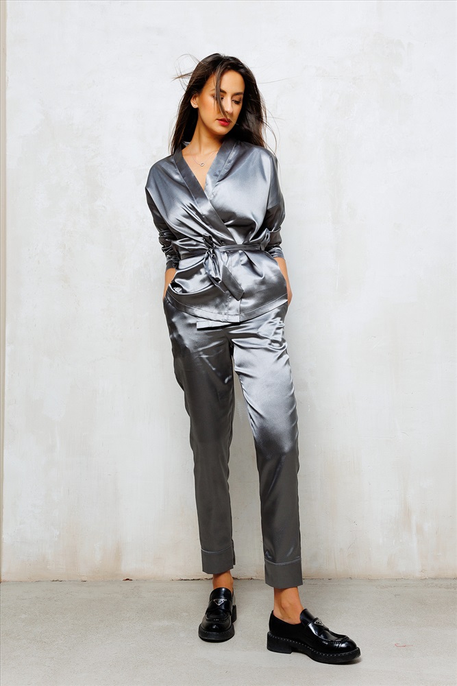 Застежка: без застежки Брюки Raposa из лёгкого струящегося атласа. Модель дополнена боковыми карманами. Пояс на эластичной резинке. Рост модели 173 см. Для полного образа, рекомендуем сочетать брюки с атласным кардиганом Raposa.
