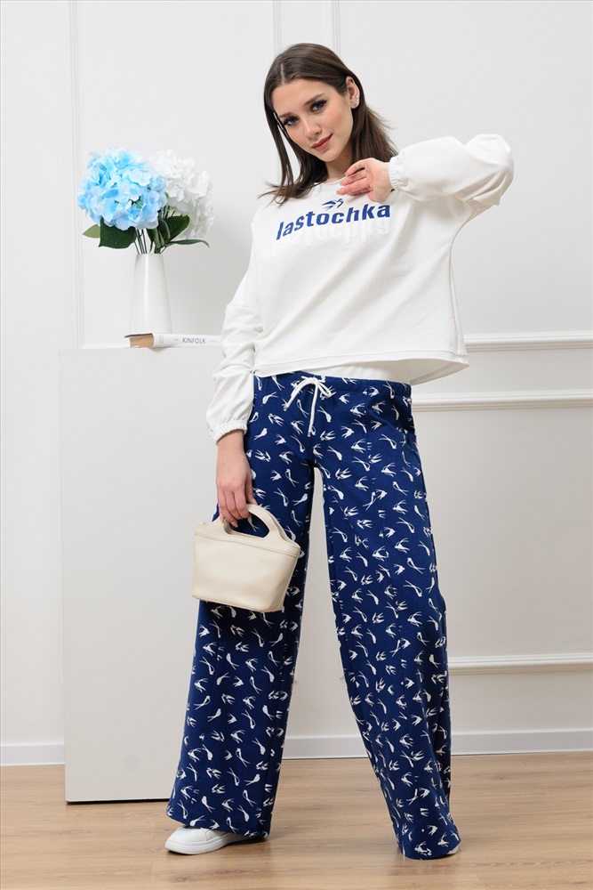 Застежка: без застежки Классические женские брюки палаццо. Широкие брюки создают стильный образ, визуально вытягивают силуэт, свободный крой делают их комфортным и уютным трикотажным элементом одежды. Трикотажные брюки выполненные из эластичного материала с отстрочкой по всей длине спереди и сзади, подчеркивают стройность. Эластичный пояс и два кармана созданы для максимального комфорта.
